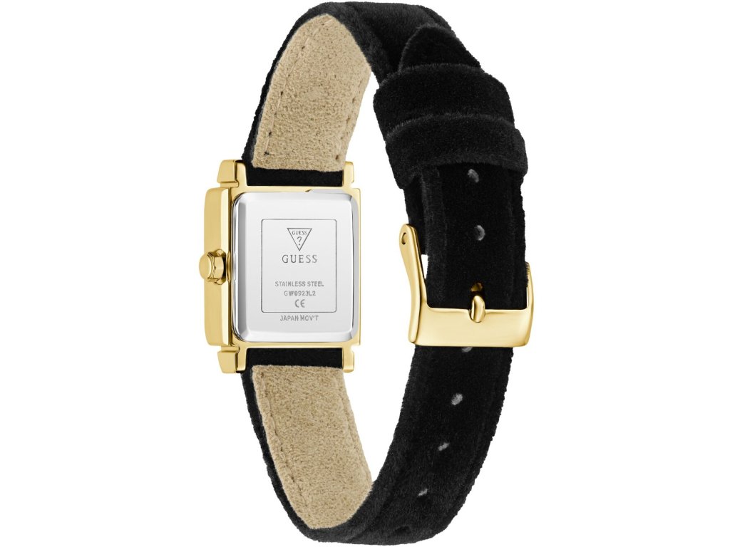 • Manufacturer no.: GW0923L2 • Manufacturer series: Taylor 21mm 1ATM • Functions: Minute, Second, Hour • Movement: Battery (quartz) • Dial color: Black • Display: Analog • Water resistant: 1 • Bezel: Fixed • Surface finish: Polished • Case color: Gold • Case material: Stainless steel • Case thickness: 7 • Case shape: Square • Case trimming: Zirconia • Case width: 21 • Caseback: Stainless steel bottom, pressed • Gender: Ladies • Glas: hardened, Mineral glass • Style: Modern • Strap material: Calf leather • Strap color: Black • Lug width: 14 • Clasp: Buckle clasp • Max wrist circumferences: 370 • Item weight: 0.02 • Scope of delivery: Instruction, Box, Warranty doc., Packaging