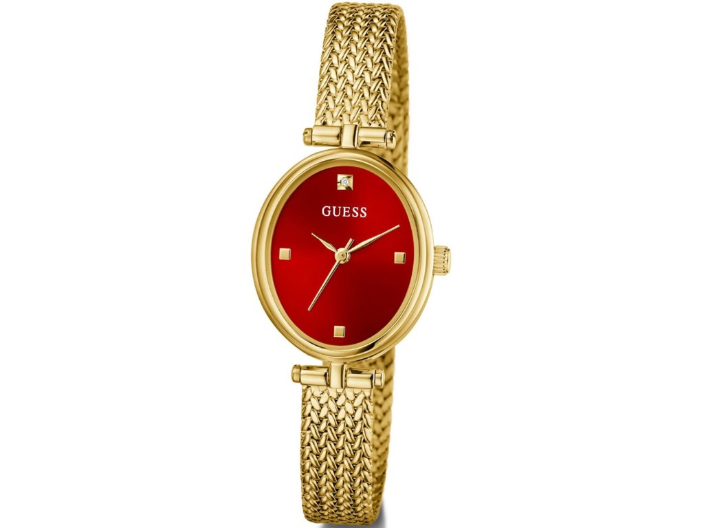 • Manufacturer no.: GW0935L4 • Manufacturer series: Ruby 24mm 3ATM • Functions: Minute, Second, Hour • Movement: Battery (quartz) • Dial color: Red • Display: Analog • Water resistant: 3 • Bezel: Fixed • Surface finish: Polished • Case color: Gold • Case material: Stainless steel • Case thickness: 9 • Case shape: Oval • Case trimming: Zirconia • Case width: 24 • Caseback: Stainless steel bottom, pressed • Gender: Ladies • Glas: hardened, Mineral glass • Style: Modern • Strap material: Stainless steel • Strap color: Gold • Lug width: 10 • Clasp: Clip clasp • Max wrist circumferences: 190 • Item weight: 0.04 • Scope of delivery: Instruction, Box, Warranty doc., Packaging