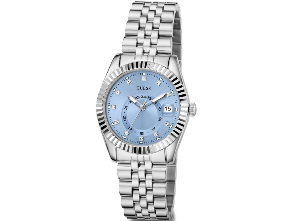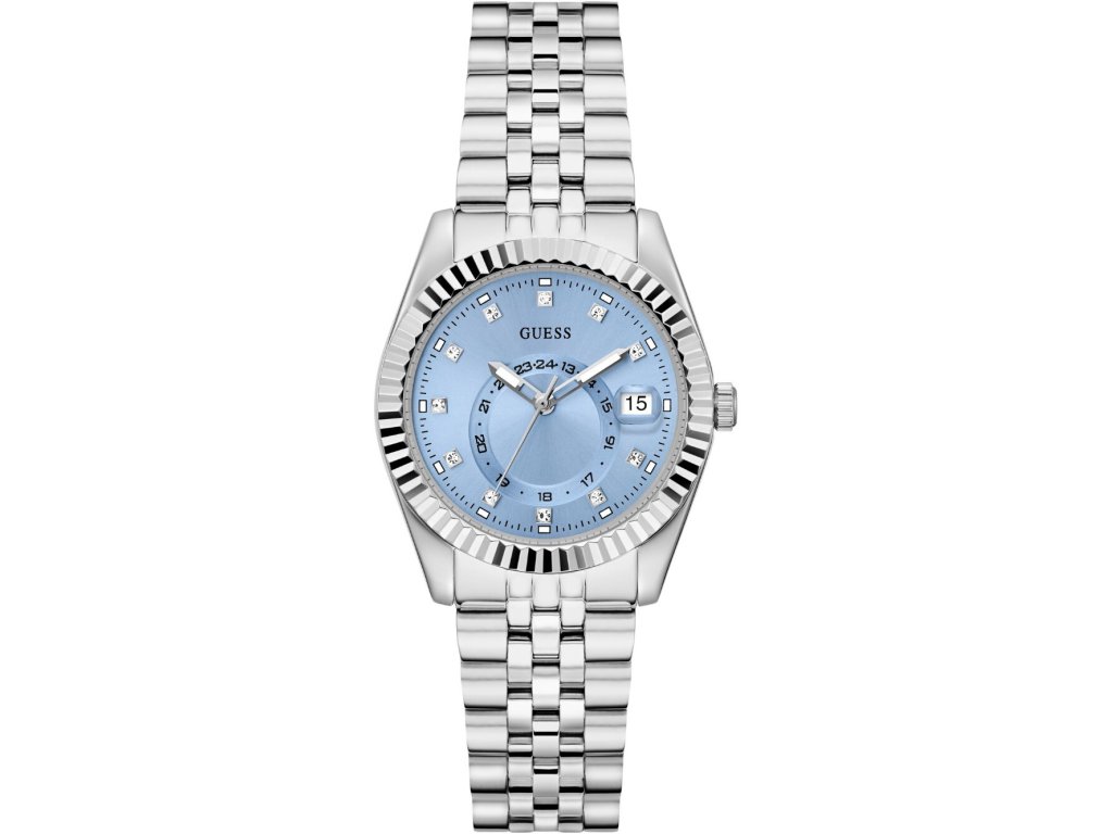 • Manufacturer no.: GW0936L1 • Manufacturer series: Jada 34mm 3ATM • Functions: Date, Minute, Second, Hour • Movement: Battery (quartz) • Dial color: Blue • Display: Analog • Water resistant: 3 • Bezel: Fixed • Surface finish: Polished • Case color: Silver • Case material: Stainless steel • Case thickness: 9 • Case shape: Round • Case trimming: Zirconia • Case width: 34 • Caseback: Stainless steel bottom, pressed • Gender: Ladies • Glas: hardened, Mineral glass • Style: Modern • Strap material: Stainless steel • Strap color: Silver • Lug width: 18 • Clasp: Folding clasp • Max wrist circumferences: 180 • Item weight: 0.09 • Scope of delivery: Instruction, Box, Warranty doc., Packaging