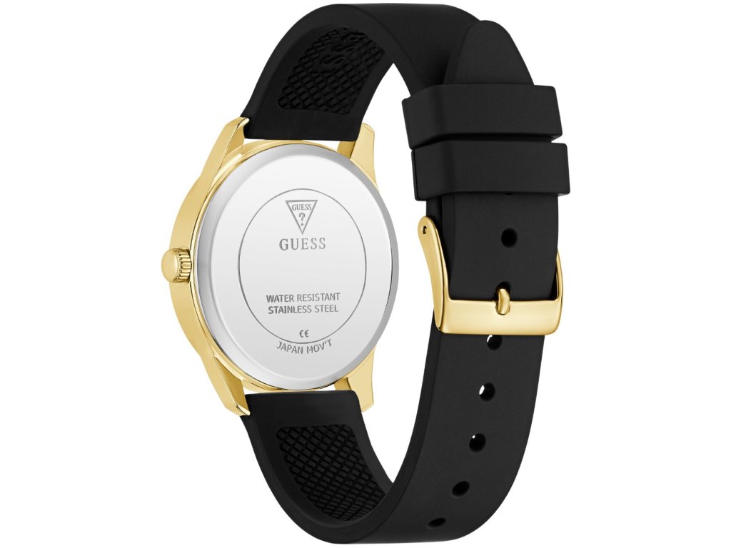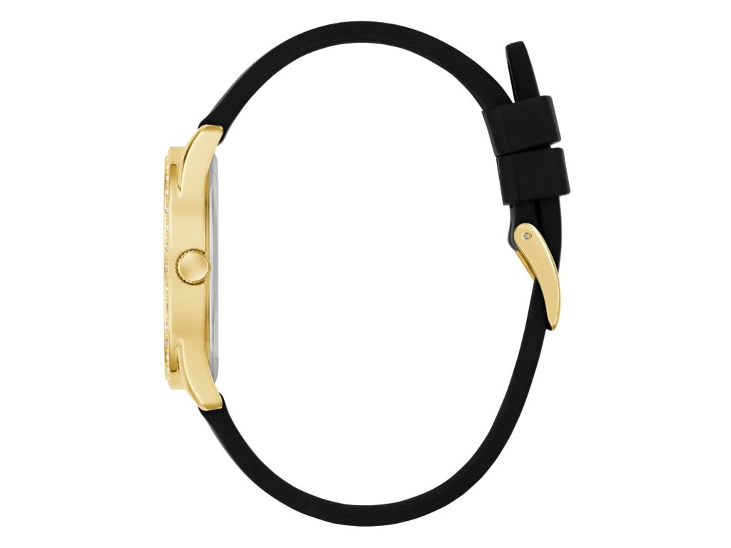 • Manufacturer no.: GW0942L2 • Manufacturer series: Roxy 36mm 3ATM • Functions: Minute, Second, Hour • Movement: Battery (quartz) • Dial color: Golden • Display: Analog • Water resistant: 3 • Bezel: Fixed • Surface finish: Polished • Case color: Gold • Case material: Stainless steel • Case thickness: 9 • Case shape: Round • Case trimming: Zirconia • Case width: 36 • Caseback: Stainless steel bottom, pressed • Gender: Ladies • Glas: hardened, Mineral glass • Style: Modern • Strap material: Silicon • Strap color: Black • Lug width: 18 • Clasp: Buckle clasp • Max wrist circumferences: 200 • Item weight: 0.05 • Scope of delivery: Instruction, Box, Warranty doc., Packaging