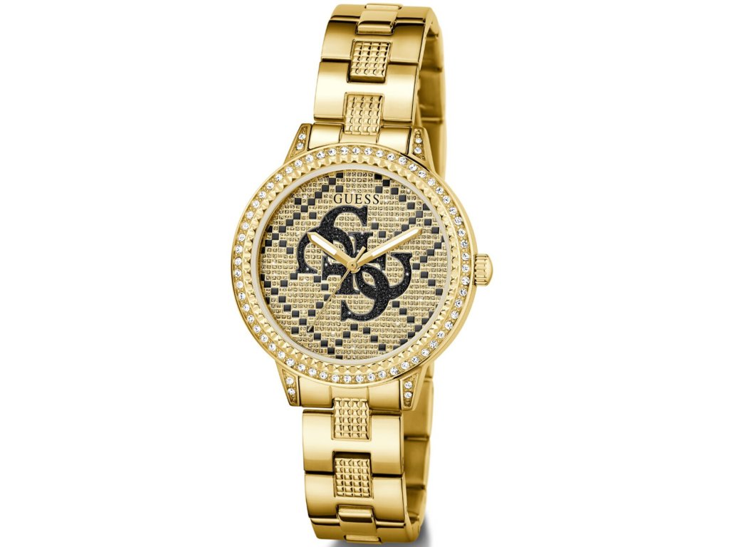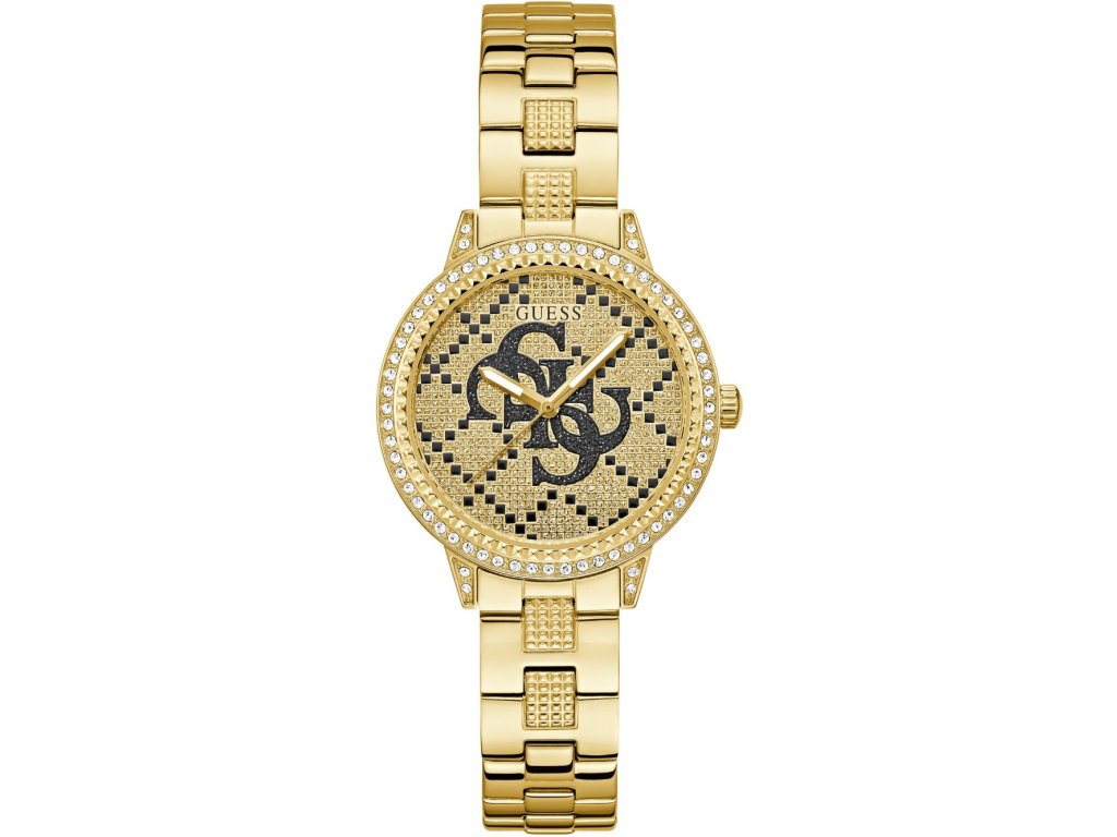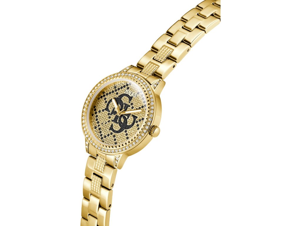 • Manufacturer no.: GW0944L2 • Manufacturer series: G-Lace 34mm 3ATM • Functions: Minute, Second, Hour • Movement: Battery (quartz) • Dial color: Golden • Display: Analog • Water resistant: 3 • Bezel: Fixed • Surface finish: Polished • Case color: Gold • Case material: Stainless steel • Case thickness: 8 • Case shape: Round • Case trimming: Zirconia • Case width: 34 • Caseback: Stainless steel bottom, pressed • Gender: Ladies • Glas: hardened, Mineral glass • Style: Modern • Strap material: Stainless steel • Strap color: Gold • Lug width: 14 • Clasp: Folding clasp • Max wrist circumferences: 190 • Item weight: 0.08 • Scope of delivery: Instruction, Box, Warranty doc., Packaging