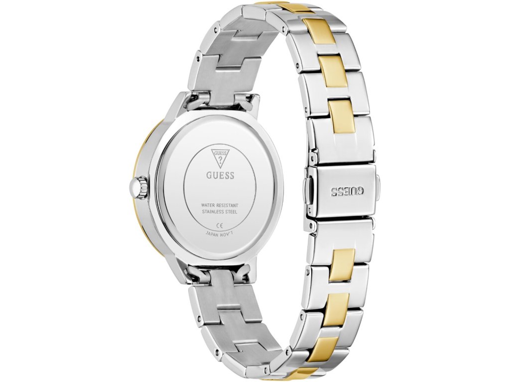 • Manufacturer no.: GW0944L3 • Manufacturer series: G-Lace 34mm 3ATM • Functions: Minute, Second, Hour • Movement: Battery (quartz) • Dial color: Silver • Display: Analog • Water resistant: 3 • Bezel: Fixed • Surface finish: Polished • Case color: Gold, Silver • Case material: Stainless steel • Case thickness: 8 • Case shape: Round • Case trimming: Zirconia • Case width: 34 • Caseback: Stainless steel bottom, pressed • Gender: Ladies • Glas: hardened, Mineral glass • Style: Modern • Strap material: Stainless steel • Strap color: Gold, Silver • Lug width: 14 • Clasp: Folding clasp • Max wrist circumferences: 190 • Item weight: 0.08 • Scope of delivery: Instruction, Box, Warranty doc., Packaging