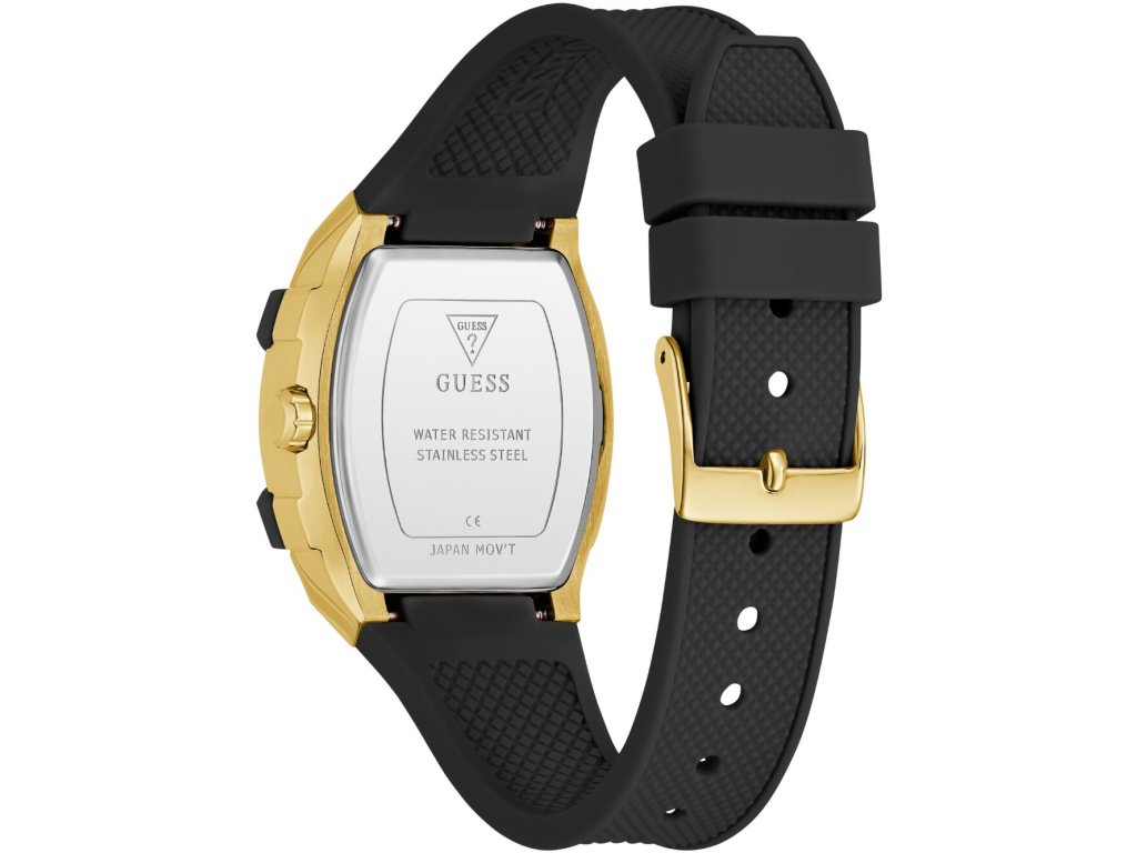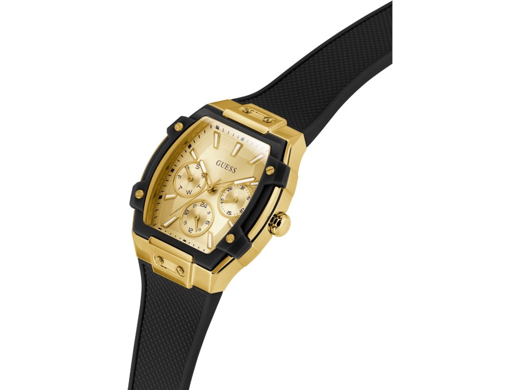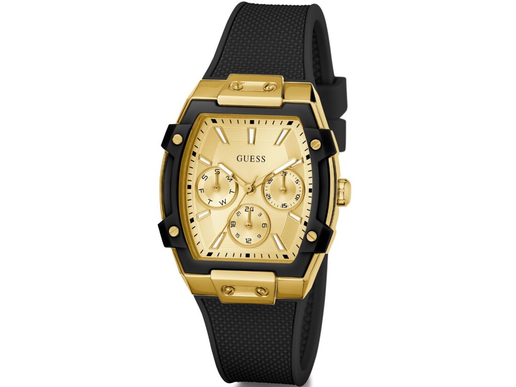 • Manufacturer no.: GW0945L2 • Manufacturer series: Phoenix 35mm 3ATM • Functions: 24-hours, Date, Minute, Second, Hour, Day • Movement: Battery (quartz) • Dial color: Golden • Display: Analog • Water resistant: 3 • Bezel: Fixed • Surface finish: Matted, Polished • Case color: Gold, Black • Case material: Stainless steel • Case thickness: 12 • Case shape: Square • Case width: 35 • Caseback: Stainless steel bottom, pressed • Gender: Ladies • Glas: hardened, Mineral glass • Lighting: Illum. indexes, Illum. hands • Style: Modern • Strap material: Silicon • Strap color: Black • Lug width: 22 • Clasp: Buckle clasp • Max wrist circumferences: 200 • Item weight: 0.06 • Scope of delivery: Instruction, Box, Warranty doc., Packaging