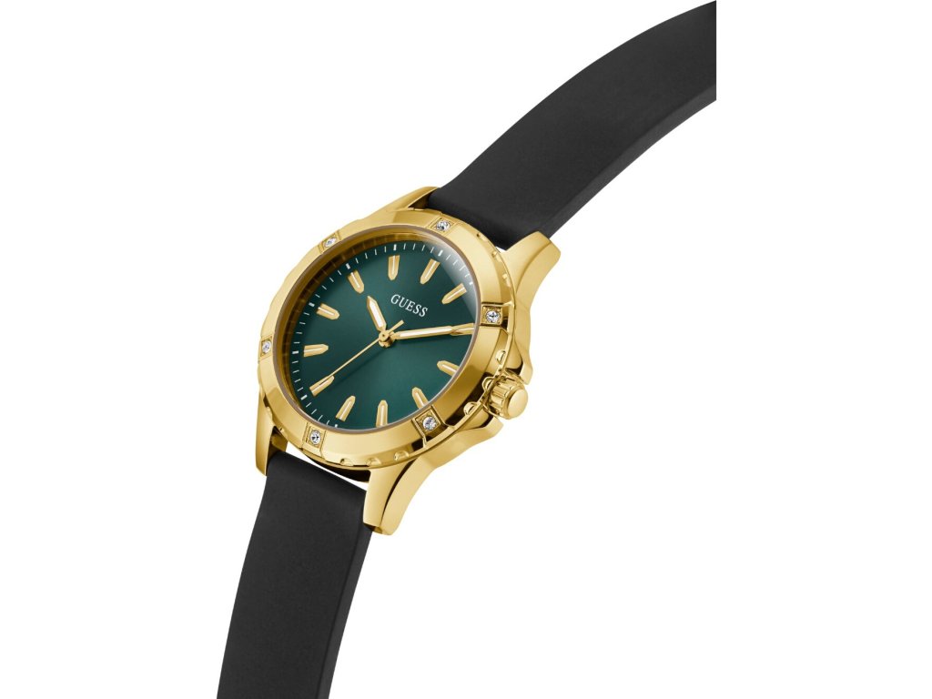 • Manufacturer no.: GW0949L2 • Manufacturer series: Mist 35mm 5ATM • Functions: Minute, Second, Hour • Movement: Battery (quartz) • Dial color: Green • Display: Analog • Water resistant: 5 • Bezel: Fixed • Surface finish: Polished • Case color: Gold • Case material: Stainless steel • Case thickness: 9 • Case shape: Round • Case trimming: Zirconia • Case width: 35 • Caseback: Stainless steel bottom, pressed • Gender: Ladies • Glas: hardened, Mineral glass • Style: Modern • Strap material: Silicon • Strap color: Black • Lug width: 16 • Clasp: Buckle clasp • Max wrist circumferences: 200 • Item weight: 0.05 • Scope of delivery: Instruction, Box, Warranty doc., Packaging