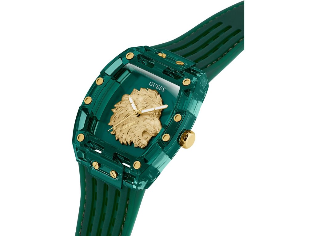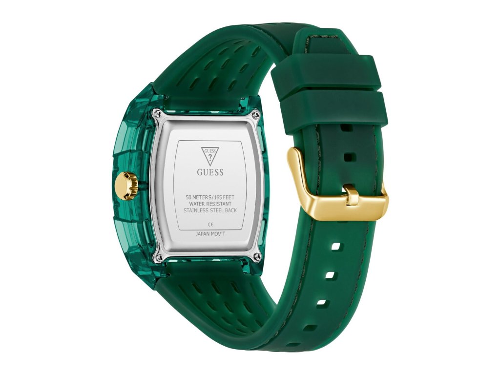 • Manufacturer no.: GW0959G2 • Manufacturer series: Phoenix 43mm 5ATM • Functions: Minute, Second, Hour • Movement: Battery (quartz) • Dial color: Golden, Green • Display: Analog • Water resistant: 5 • Bezel: Fixed • Surface finish: Matted, Polished • Case color: Green • Case material: Plastic • Case thickness: 13 • Case shape: Square • Case width: 43 • Caseback: Stainless steel bottom, screwed • Gender: Mens • Glas: hardened, Mineral glass • Lighting: Illum. hands • Style: Modern • Strap material: Silicon • Strap color: Green • Lug width: 30 • Clasp: Buckle clasp • Max wrist circumferences: 220 • Item weight: 0.06 • Scope of delivery: Instruction, Box, Warranty doc., Packaging