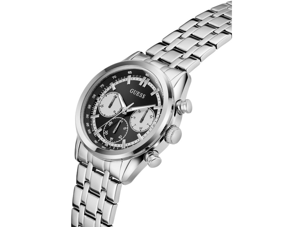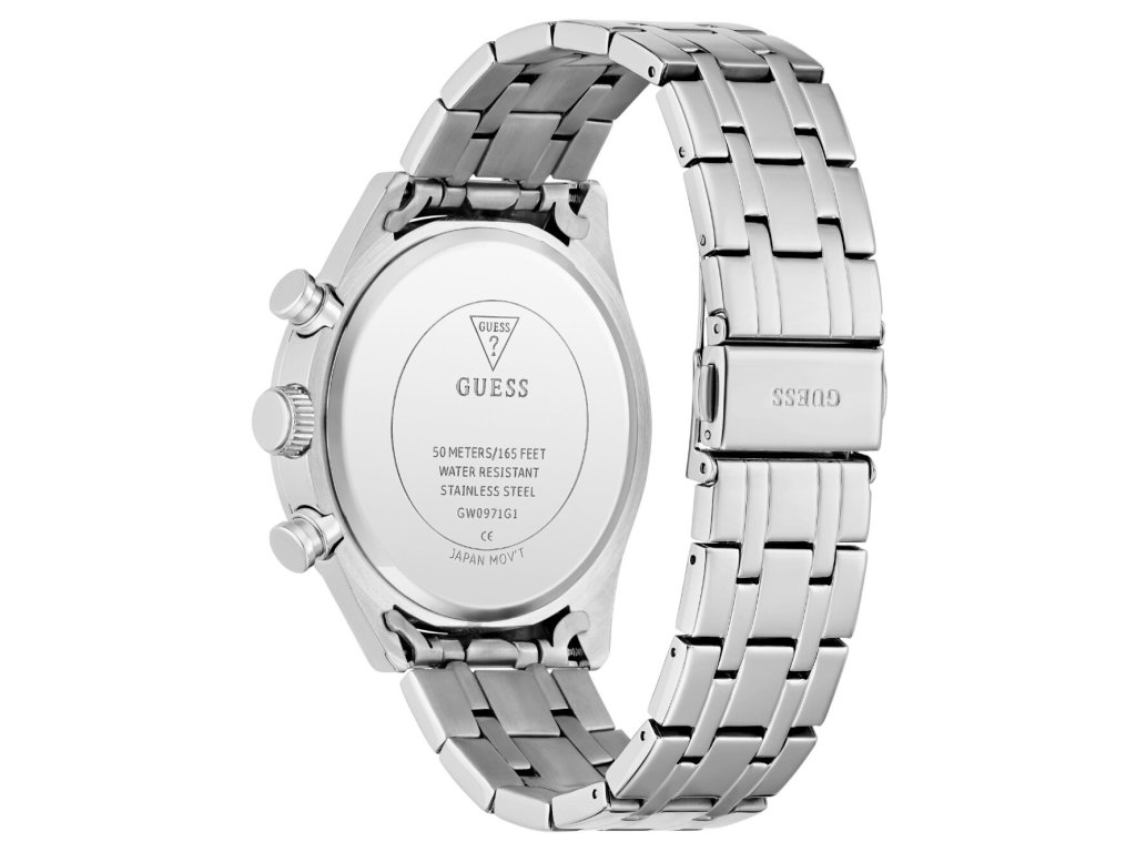 • Manufacturer no.: GW0971G1 • Manufacturer series: Dawson 44mm 5ATM • Functions: 24-hours, Date, Minute, Second, Hour, Day • Movement: Battery (quartz) • Dial color: Black • Display: Analog • Water resistant: 5 • Bezel: Fixed • Surface finish: Matted, Polished • Case color: Silver • Case material: Stainless steel • Case thickness: 11 • Case shape: Round • Case width: 44 • Caseback: Stainless steel bottom, pressed • Gender: Mens • Glas: hardened, Mineral glass • Style: Modern • Strap material: Stainless steel • Strap color: Silver • Lug width: 21 • Clasp: Folding clasp • Max wrist circumferences: 195 • Item weight: 0.13 • Scope of delivery: Instruction, Box, Warranty doc., Packaging