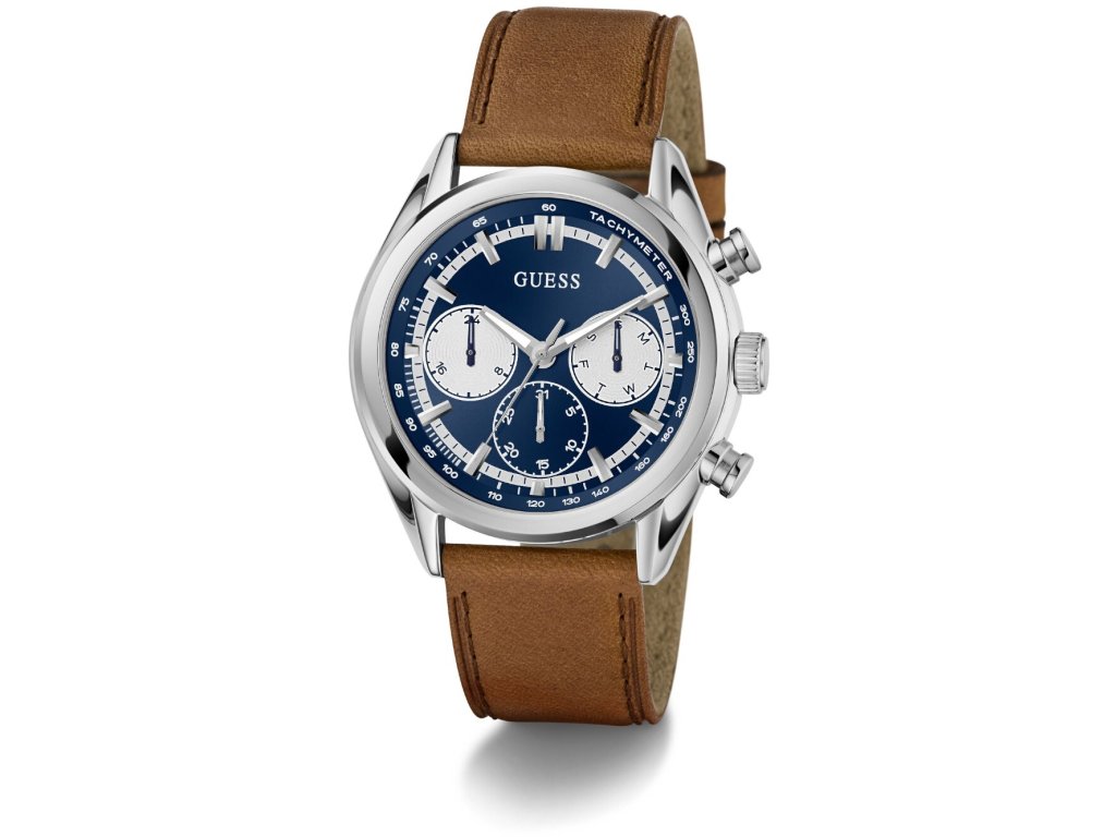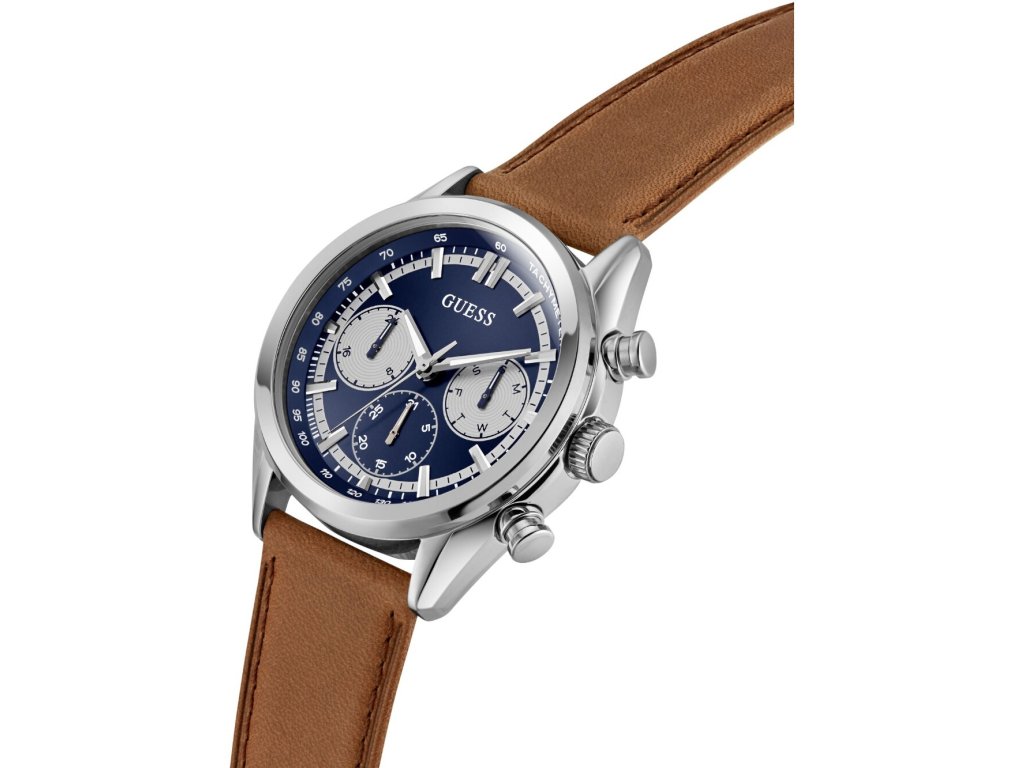 • Manufacturer no.: GW0972G1 • Manufacturer series: Dawson 44mm 5ATM • Functions: 24-hours, Date, Minute, Second, Hour, Day • Movement: Battery (quartz) • Dial color: Blue • Display: Analog • Water resistant: 5 • Bezel: Fixed • Surface finish: Matted, Polished • Case color: Silver • Case material: Stainless steel • Case thickness: 11 • Case shape: Round • Case width: 44 • Caseback: Stainless steel bottom, pressed • Gender: Mens • Glas: hardened, Mineral glass • Lighting: Illum. hands • Style: Modern • Strap material: Calf leather • Strap color: Brown • Lug width: 22 • Clasp: Buckle clasp • Max wrist circumferences: 220 • Item weight: 0.07 • Scope of delivery: Instruction, Box, Warranty doc., Packaging