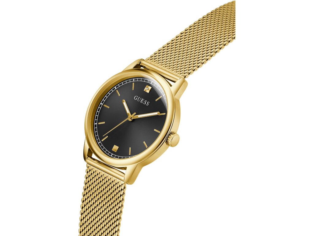 • Manufacturer no.: GW0974G2 • Manufacturer series: Chandler 40mm 3ATM • Functions: Minute, Second, Hour • Movement: Battery (quartz) • Dial color: Black • Display: Analog • Water resistant: 3 • Bezel: Fixed • Surface finish: Polished • Case color: Gold • Case material: Stainless steel • Case thickness: 10 • Case shape: Round • Case trimming: Zirconia • Case width: 40 • Caseback: Stainless steel bottom, pressed • Gender: Mens • Glas: hardened, Mineral glass • Style: Modern • Strap material: Stainless steel • Strap color: Gold • Lug width: 20 • Clasp: Clip clasp • Max wrist circumferences: 210 • Item weight: 0.08 • Scope of delivery: Instruction, Box, Warranty doc., Packaging