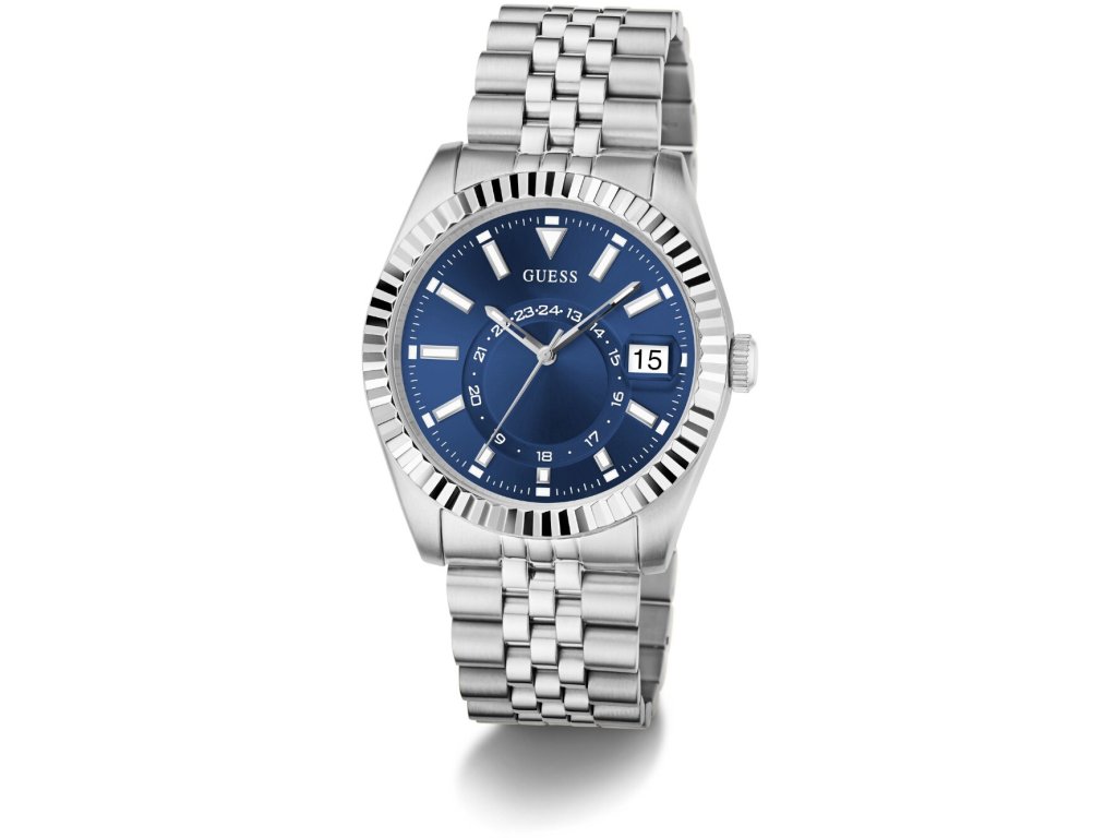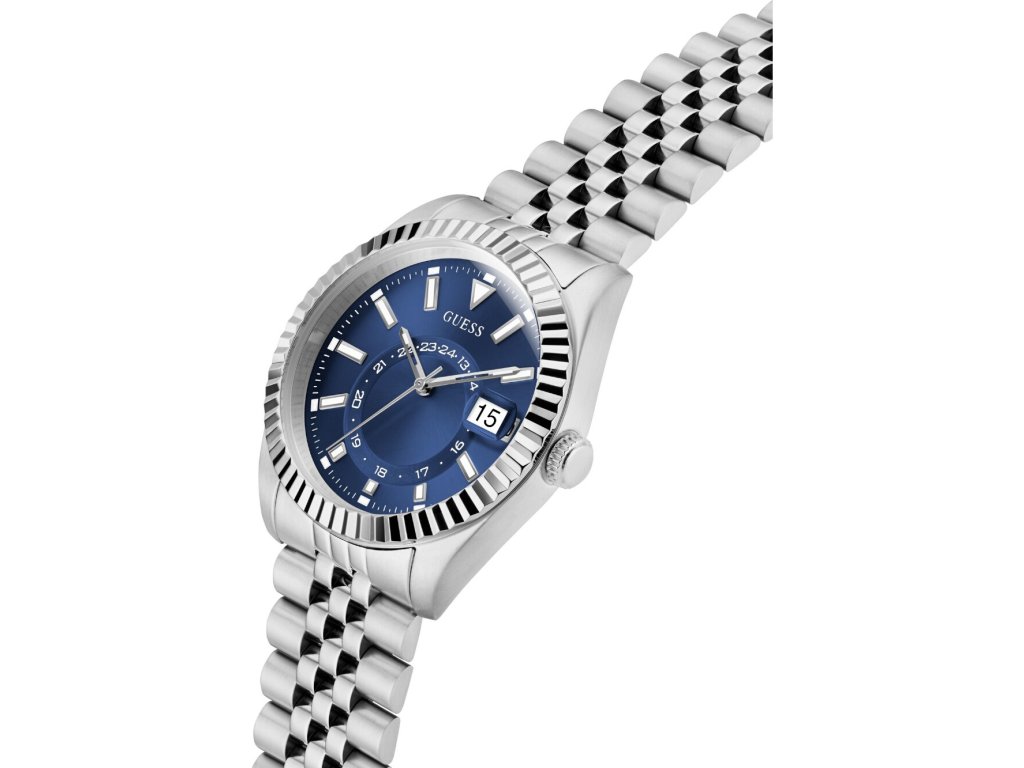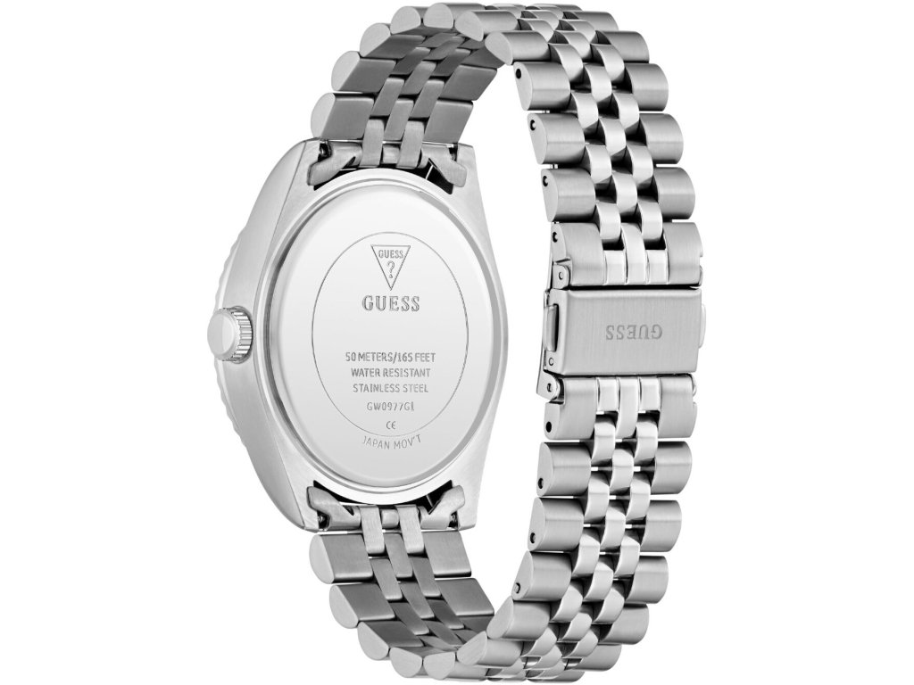 • Manufacturer no.: GW0977G1 • Manufacturer series: Jaden 42mm 5ATM • Functions: Date, Minute, Second, Hour • Movement: Battery (quartz) • Dial color: Blue • Display: Analog • Water resistant: 5 • Bezel: Fixed • Surface finish: Matted • Case color: Silver • Case material: Stainless steel • Case thickness: 11 • Case shape: Round • Case width: 42 • Caseback: Stainless steel bottom, pressed • Gender: Mens • Glas: hardened, Mineral glass • Lighting: Illum. indexes, Illum. hands • Style: Classic • Strap material: Stainless steel • Strap color: Silver • Lug width: 22 • Clasp: Folding clasp • Max wrist circumferences: 195 • Item weight: 0.20 • Scope of delivery: Instruction, Box, Warranty doc., Packaging