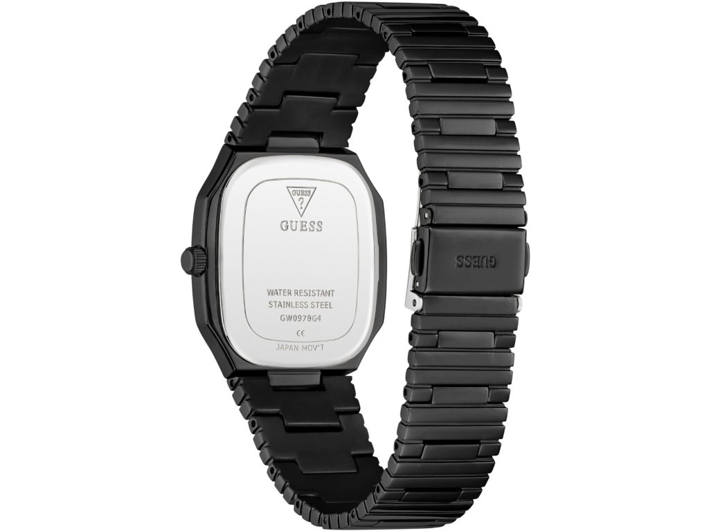 • Manufacturer no.: GW0978G4 • Manufacturer series: Oliver 35mm 3ATM • Functions: Date, Minute, Second, Hour, Day • Movement: Battery (quartz) • Dial color: Black • Display: Analog • Water resistant: 3 • Bezel: Fixed • Surface finish: Matted, Polished • Case color: Black • Case material: Stainless steel • Case thickness: 8 • Case shape: Cushion • Case width: 35 • Caseback: Stainless steel bottom, pressed • Gender: Mens • Glas: hardened, Mineral glass • Lighting: Illum. hands • Style: Modern • Strap material: Stainless steel • Strap color: Black • Lug width: 22 • Clasp: Folding clasp • Max wrist circumferences: 200 • Item weight: 0.10 • Scope of delivery: Instruction, Box, Warranty doc., Packaging
