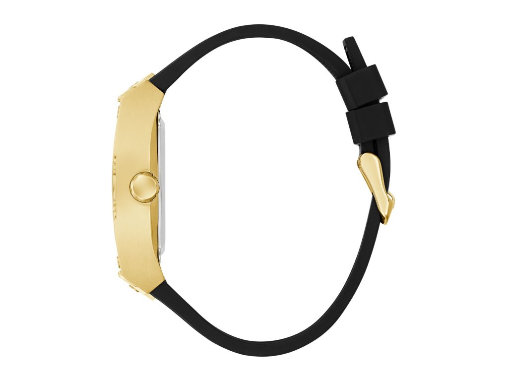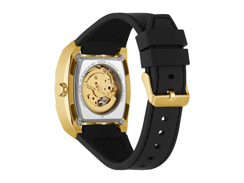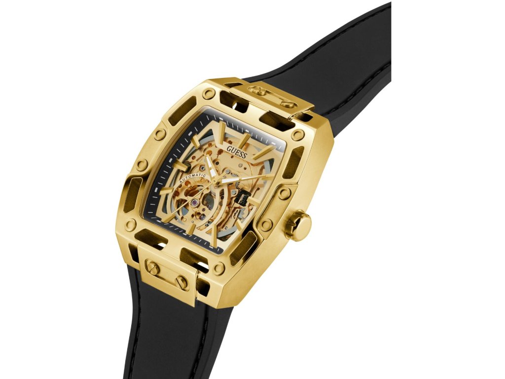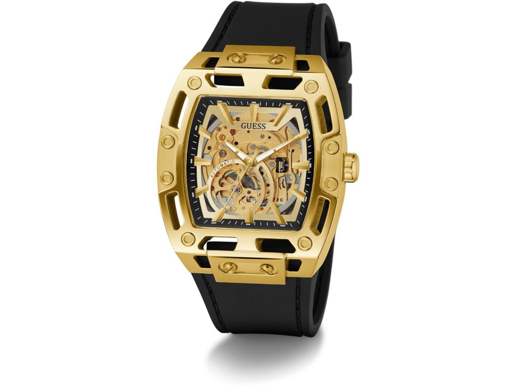 • Manufacturer no.: GW0980G2 • Manufacturer series: Phoenix Automatic 43mm 5ATM • Functions: Minute, Second, Hour • Movement: Automatic • Dial color: Golden • Display: Analog • Water resistant: 5 • Bezel: Fixed • Surface finish: Matted, Polished • Case color: Gold • Case material: Stainless steel • Case thickness: 13 • Case shape: Square • Case width: 43 • Caseback: Glas bottom, screwed • Gender: Mens • Glas: hardened, Mineral glass • Lighting: Illum. hands • Style: Classic • Strap material: Silicon • Strap color: Black • Lug width: 30 • Clasp: Buckle clasp • Max wrist circumferences: 195 • Item weight: 0.16 • Scope of delivery: Instruction, Box, Warranty doc., Packaging
