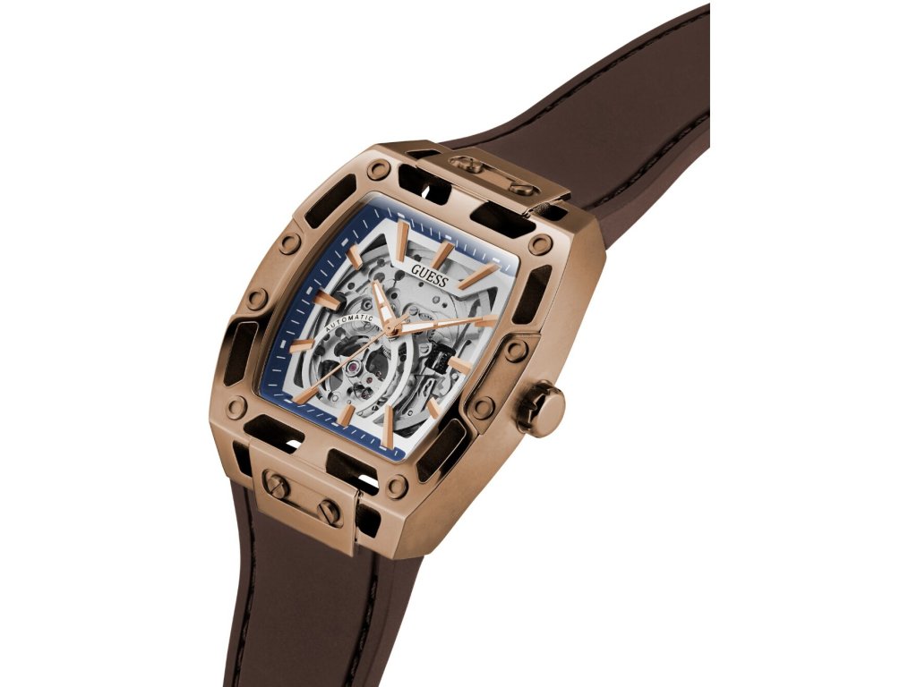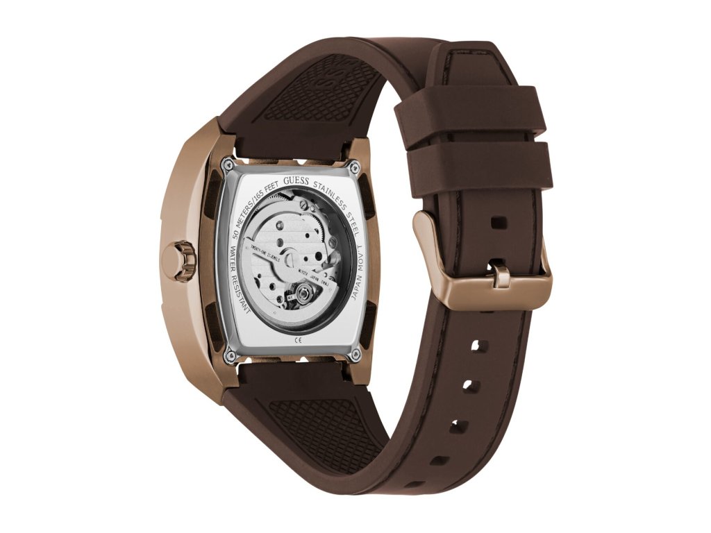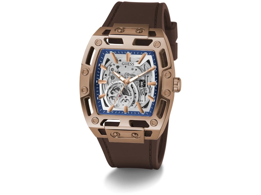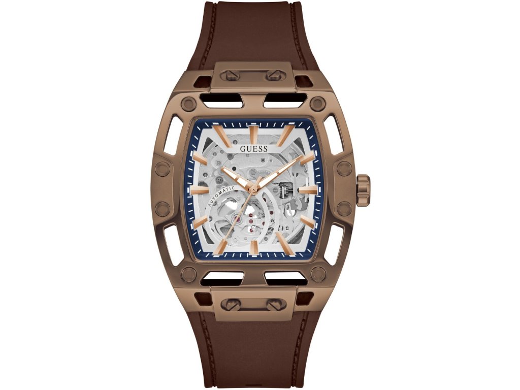 • Manufacturer no.: GW0980G3 • Manufacturer series: Phoenix Automatic 43mm 5ATM • Functions: Minute, Second, Hour • Movement: Automatic • Dial color: Silver • Display: Analog • Water resistant: 5 • Bezel: Fixed • Surface finish: Matted, Polished • Case color: Bronze • Case material: Stainless steel • Case thickness: 13 • Case shape: Square • Case width: 43 • Caseback: Glas bottom, screwed • Gender: Mens • Glas: hardened, Mineral glass • Lighting: Illum. hands • Style: Classic • Strap material: Silicon • Strap color: Brown • Lug width: 30 • Clasp: Buckle clasp • Max wrist circumferences: 195 • Item weight: 0.16 • Scope of delivery: Instruction, Box, Warranty doc., Packaging