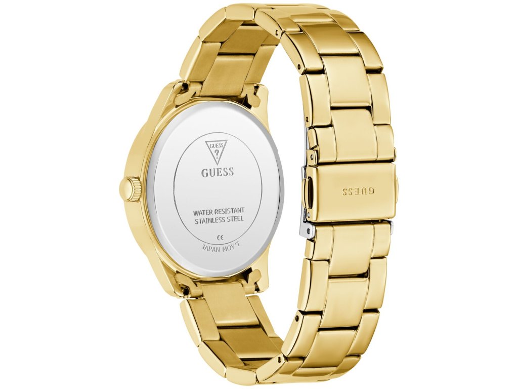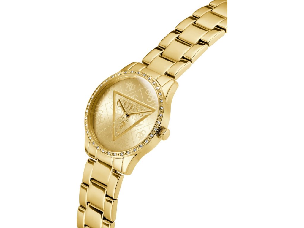 • Manufacturer no.: GW0987L2 • Manufacturer series: Roxy 36mm 3ATM • Functions: Minute, Second, Hour • Movement: Battery (quartz) • Dial color: Golden • Display: Analog • Water resistant: 3 • Bezel: Fixed • Surface finish: Polished • Case color: Gold • Case material: Stainless steel • Case thickness: 9 • Case shape: Round • Case trimming: Zirconia • Case width: 36 • Caseback: Stainless steel bottom, pressed • Gender: Ladies • Glas: hardened, Mineral glass • Style: Modern • Strap material: Stainless steel • Strap color: Gold • Lug width: 18 • Clasp: Folding clasp • Max wrist circumferences: 180 • Item weight: 0.09 • Scope of delivery: Instruction, Box, Warranty doc., Packaging