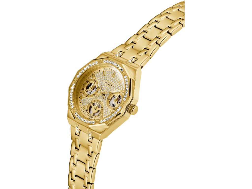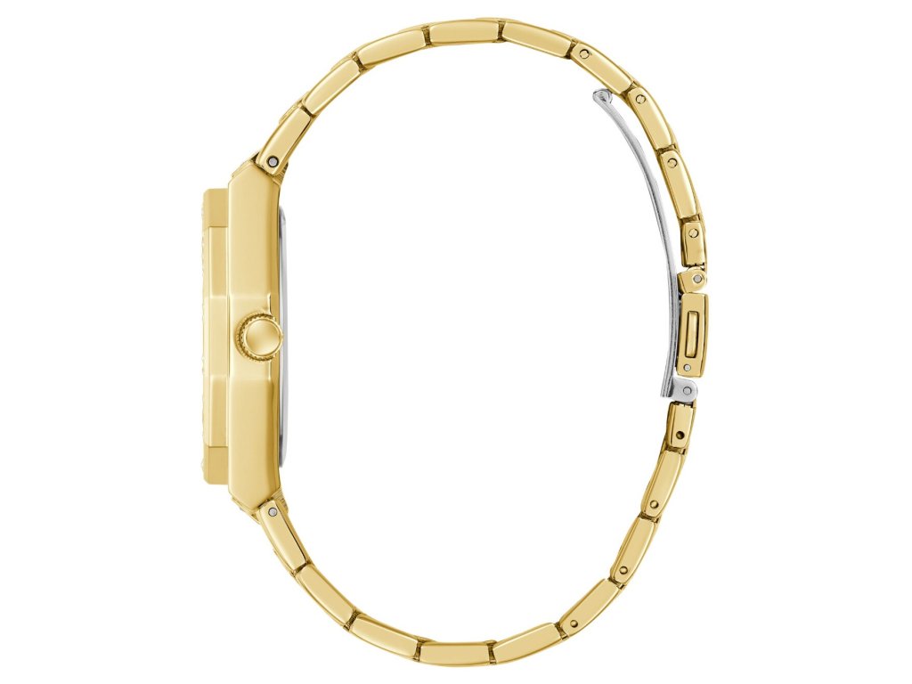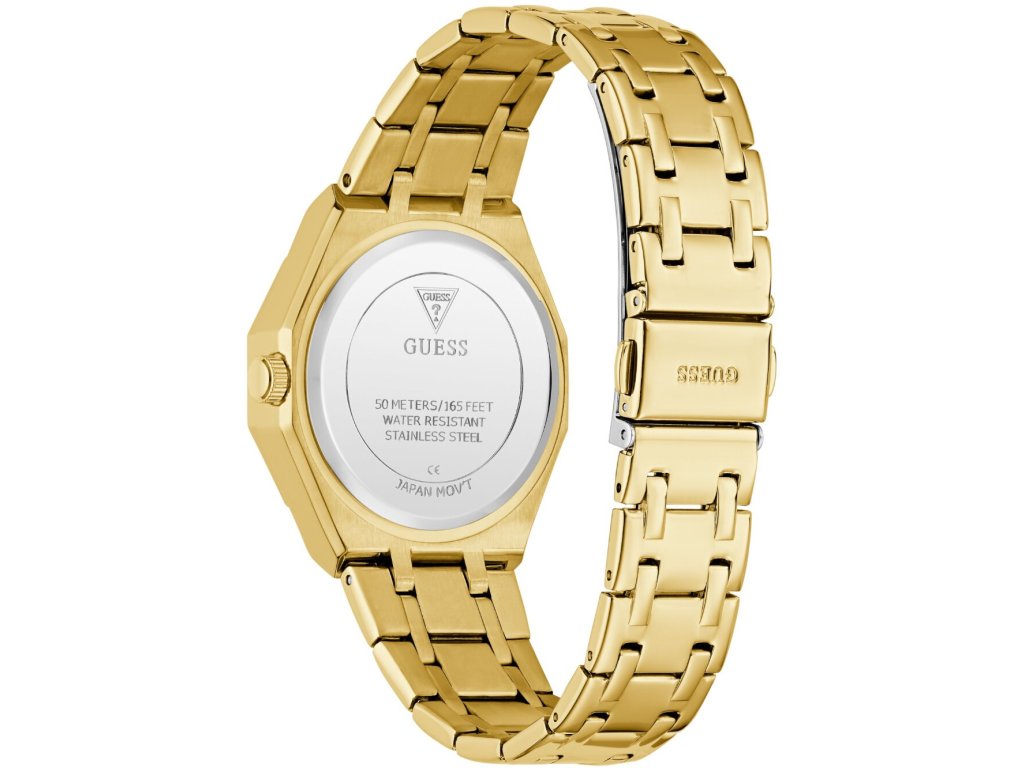 • Manufacturer no.: GW0988L2 • Manufacturer series: Quinn 36mm 5ATM • Functions: 24-hours, Date, Minute, Second, Hour, Day • Movement: Battery (quartz) • Dial color: Golden • Display: Analog • Water resistant: 5 • Bezel: Fixed • Surface finish: Polished • Case color: Gold • Case material: Stainless steel • Case thickness: 10 • Case shape: Round • Case trimming: Zirconia • Case width: 36 • Caseback: Stainless steel bottom, pressed • Gender: Ladies • Glas: hardened, Mineral glass • Style: Modern • Strap material: Stainless steel • Strap color: Gold • Lug width: 20 • Clasp: Folding clasp • Max wrist circumferences: 180 • Item weight: 0.10 • Scope of delivery: Instruction, Box, Warranty doc., Packaging
