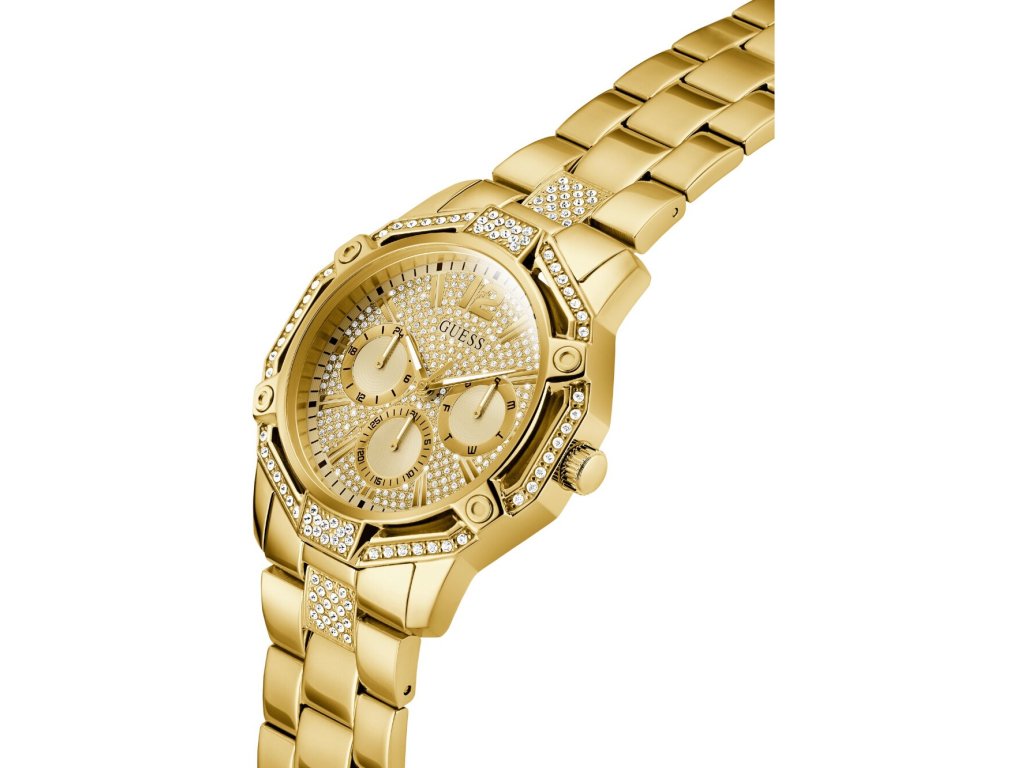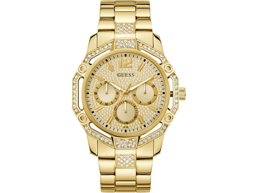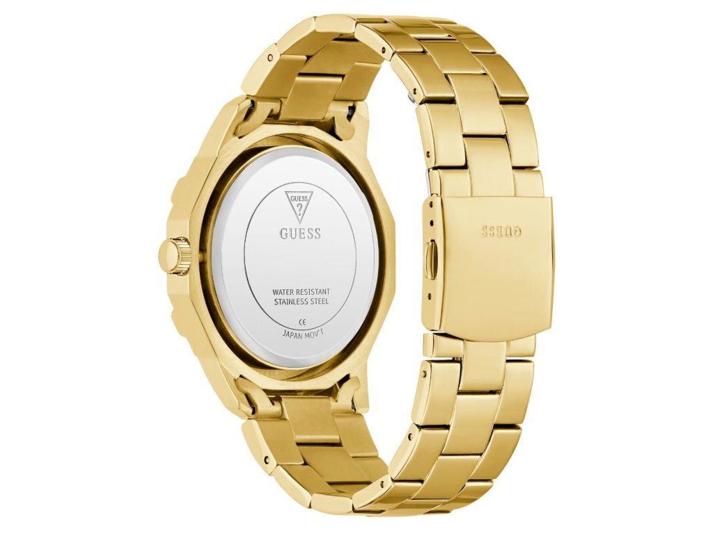 • Manufacturer no.: GW0990G2 • Manufacturer series: Regal 46mm 3ATM • Functions: Date, Minute, Second, Hour, Day • Movement: Battery (quartz) • Dial color: Golden • Display: Analog • Water resistant: 3 • Bezel: Fixed • Surface finish: Polished • Case color: Gold • Case material: Stainless steel • Case thickness: 11 • Case shape: Square • Case trimming: Zirconia • Case width: 46 • Caseback: Stainless steel bottom, pressed • Gender: Mens • Glas: hardened, Mineral glass • Lighting: Illum. hands • Style: Elegant • Strap material: Stainless steel • Strap color: Gold • Lug width: 24 • Clasp: Folding clasp • Max wrist circumferences: 200 • Item weight: 0.23 • Scope of delivery: Instruction, Box, Warranty doc., Packaging