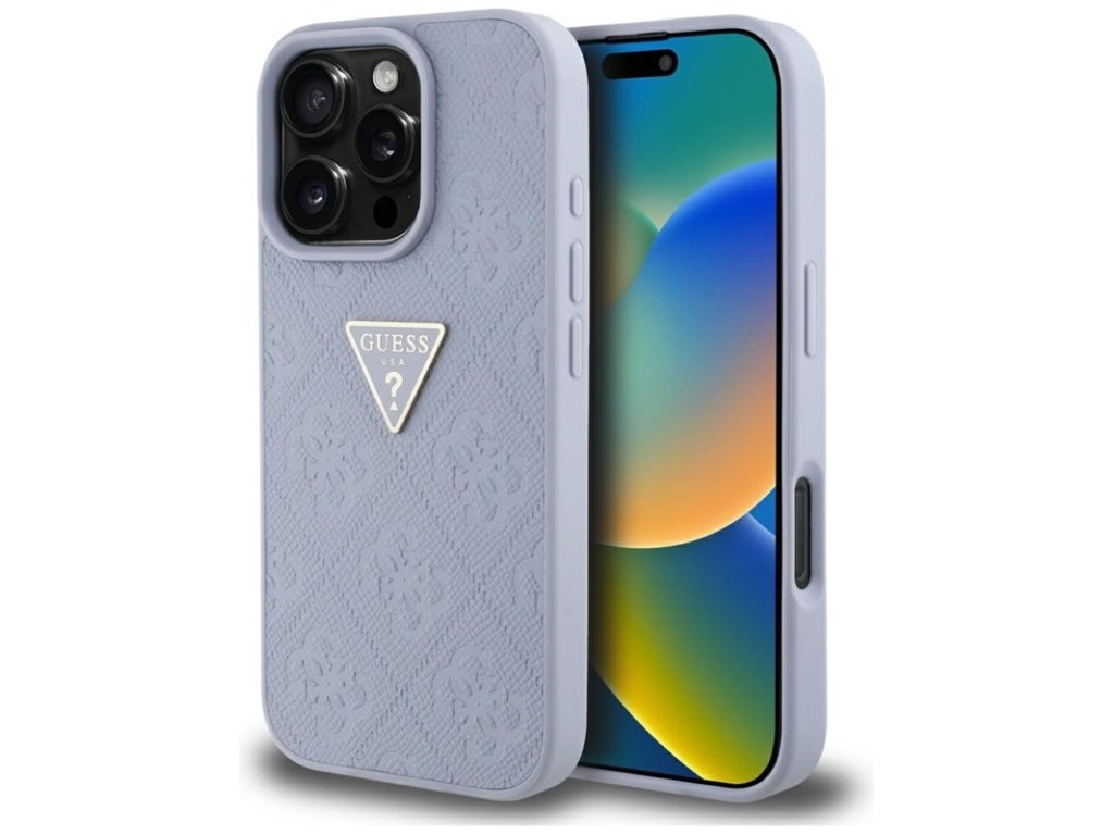 Guess Hot Stamp 4G Pattern Triangle Metal Logo - Pouzdro pro iPhone 16 Pro Max (fialové)
