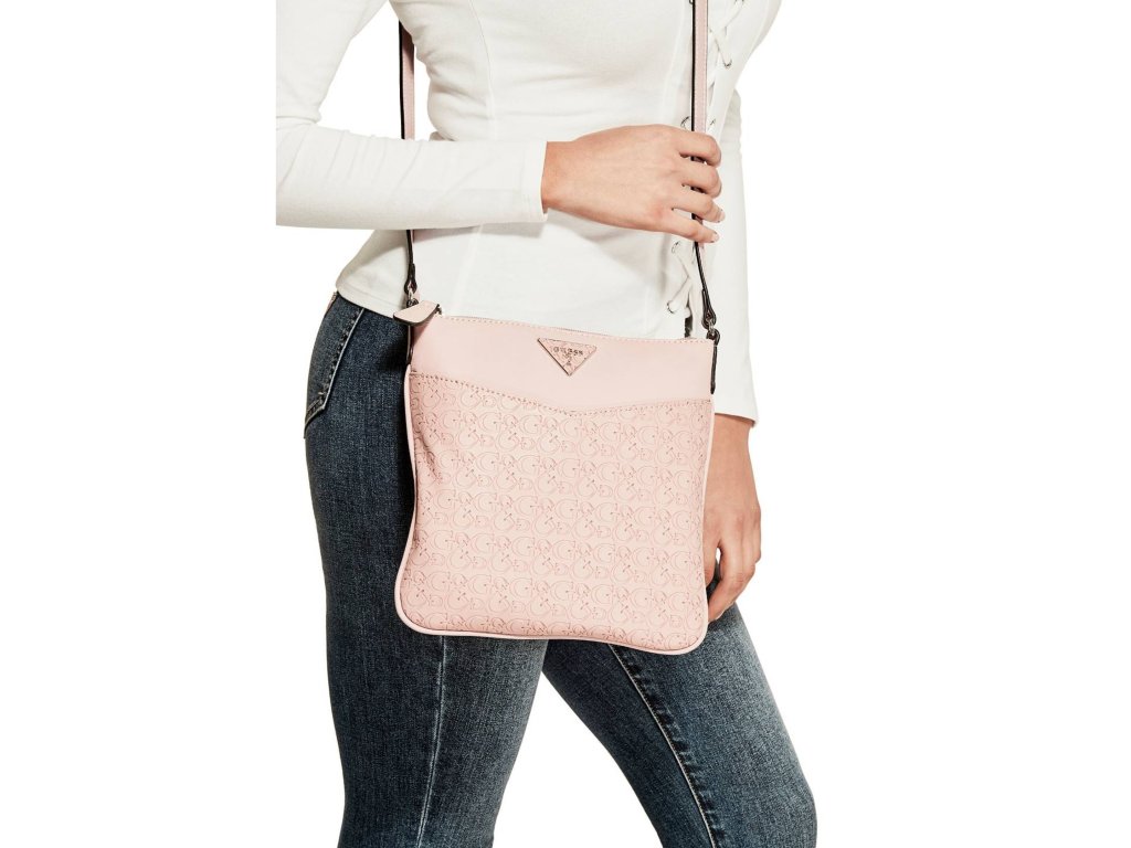 GUESS KABELKA DESIRE LOGO-EMBOSSED LARGE CROSSBODY růžová