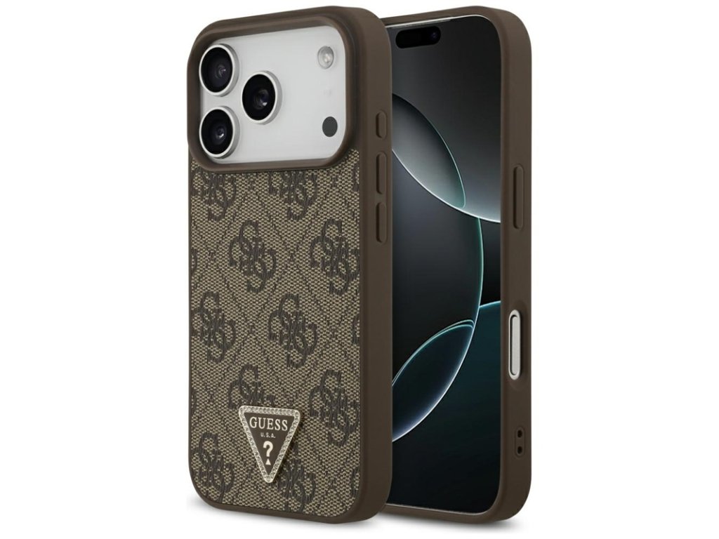 Guess Leather 4G Triangle Strass MagSafe - Pouzdro iPhone 17 Pro (hnědé)