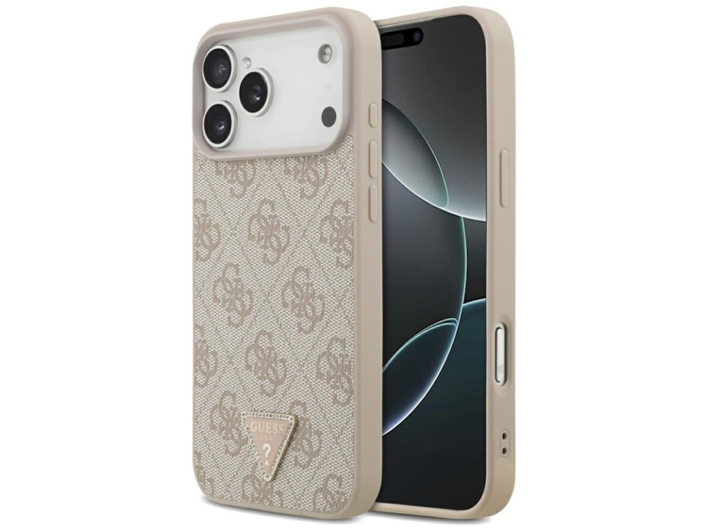 Guess Leather 4G Triangle Strass MagSafe - Pouzdro iPhone 17 Pro Max (růžové)