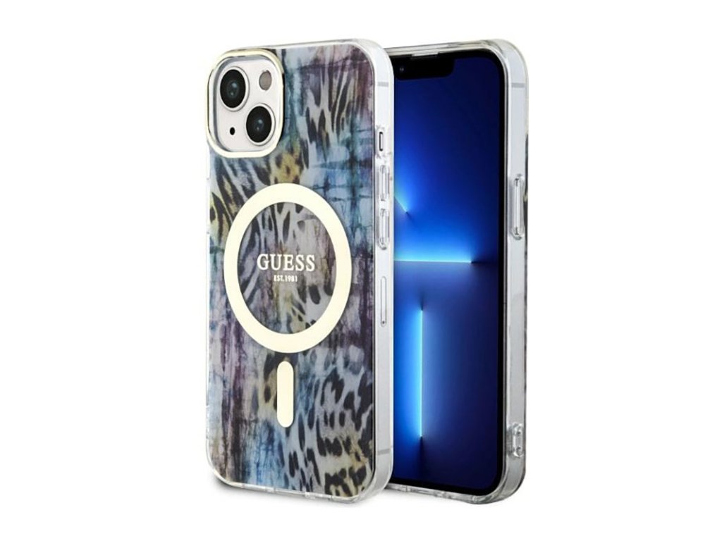 Guess Leopard MagSafe - pouzdro pro iPhone 14 (modré)