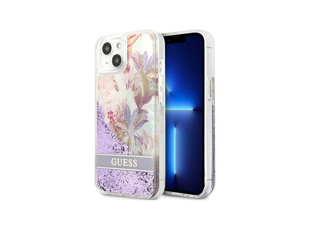 Guess Liquid Glitter Flower - kryt pro iPhone 13 mini (fialový)