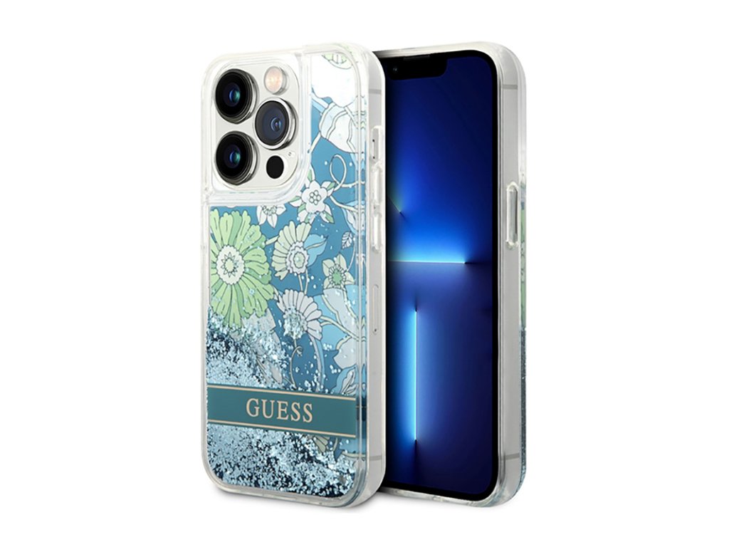 Guess Liquid Glitter Flower - pouzdro pro iPhone 14 Pro (zelené)