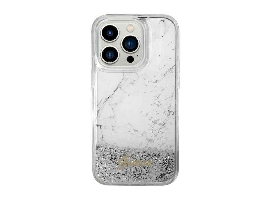 Guess Liquid Glitter Marble - pouzdro pro iPhone 14 (bílé)