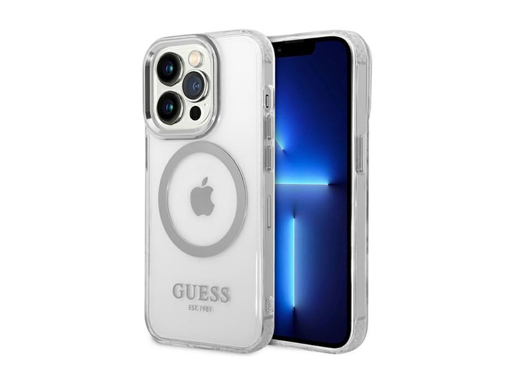 Guess Metal Outline MagSafe - pouzdro pro iPhone 14 Pro Max (čiré)