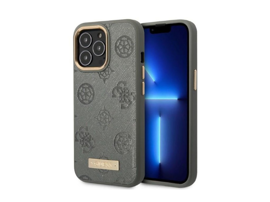 Guess Peony Logo Plate MagSafe - pouzdro pro iPhone 13 Pro (šedé)