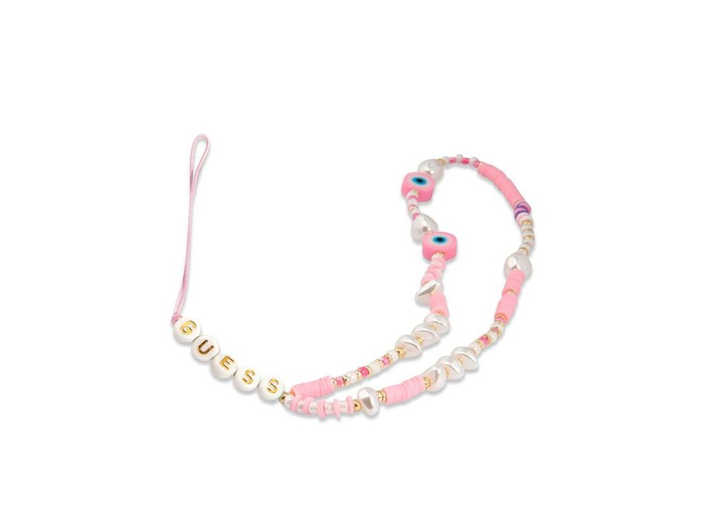 Je vyroben z provázku omotaného korálky a korálky. Jeho součástí jsou také korálky s logem Guess.