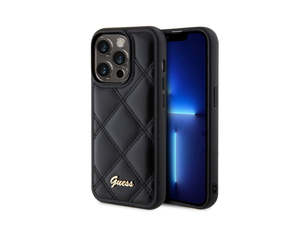 Guess Quilted Metal Logo - pouzdro pro iPhone 15 Pro (černé)