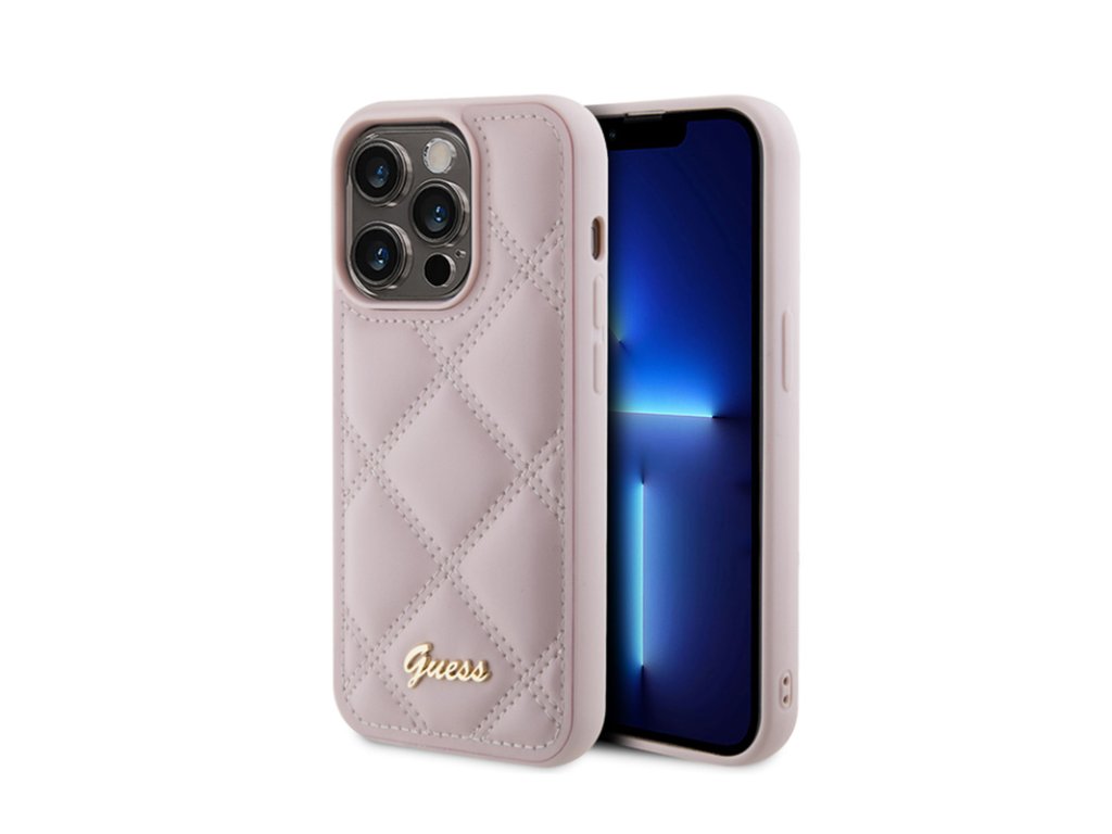 Guess Quilted Metal Logo - pouzdro pro iPhone 15 Pro (růžové)