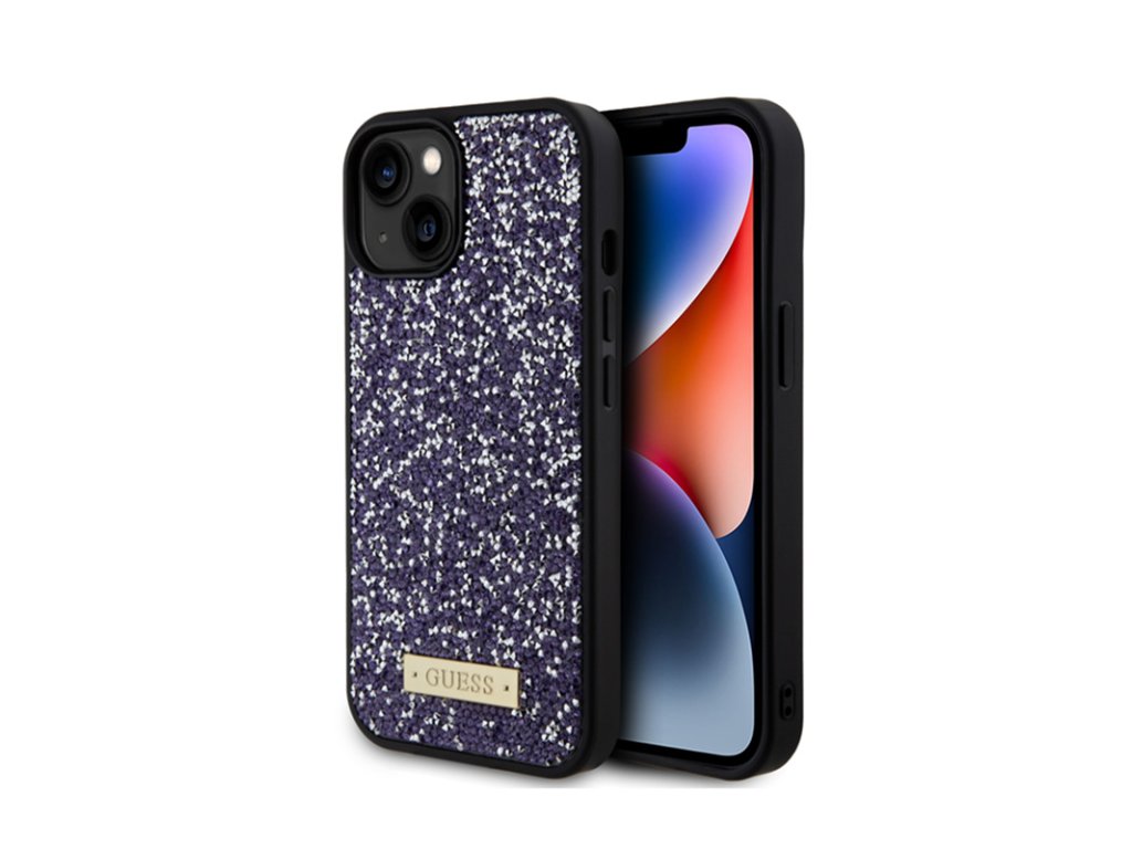 Guess Rhinestone Metal Logo - pouzdro pro iPhone 15 (růžové)