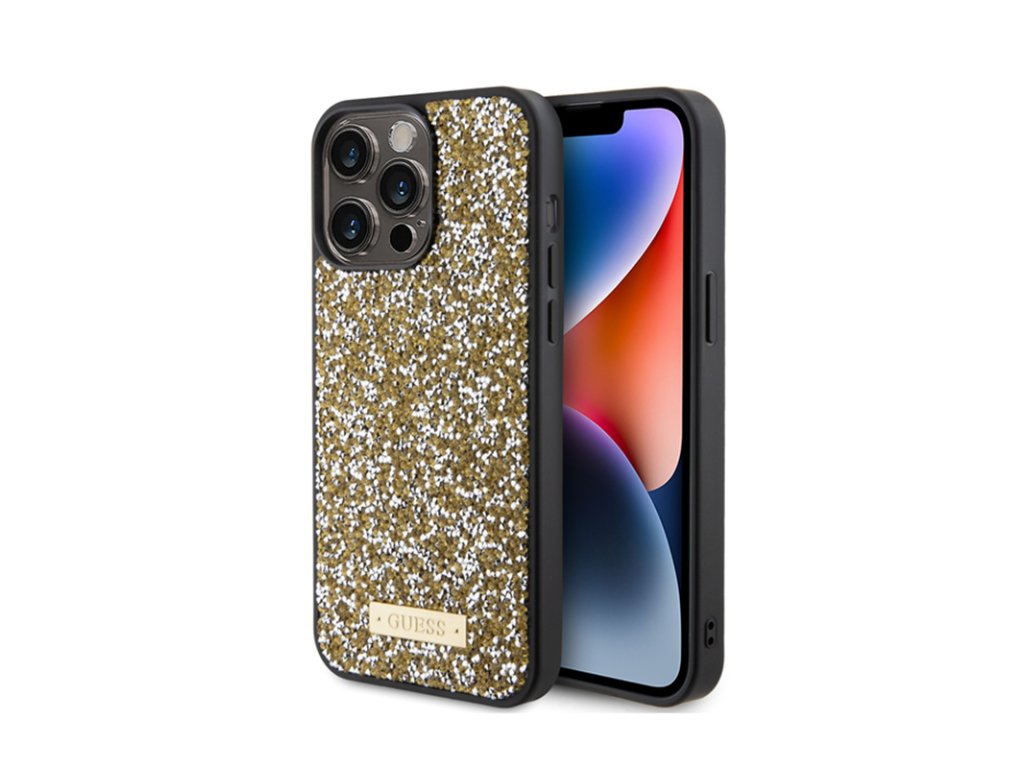 Guess Rhinestone Metal Logo - pouzdro pro iPhone 15 Pro Max (žluté)