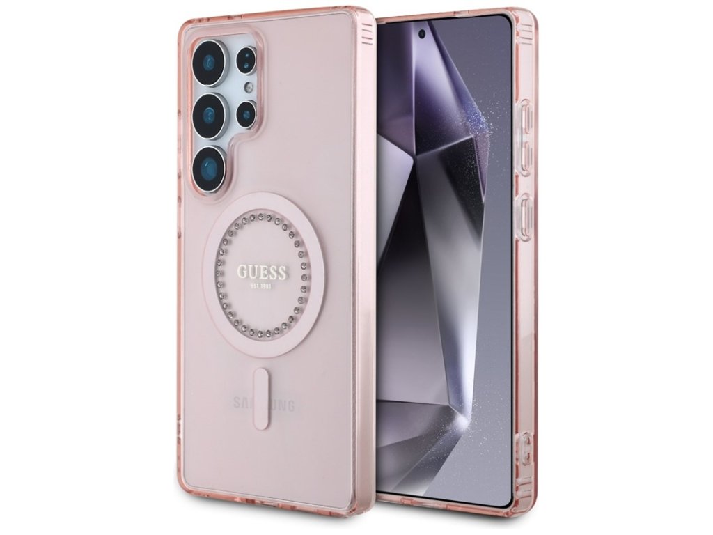 Guess Rhinestones Printed Classic Logo MagSafe - Pouzdro pro Samsung Galaxy S25 Ultra (růžové)