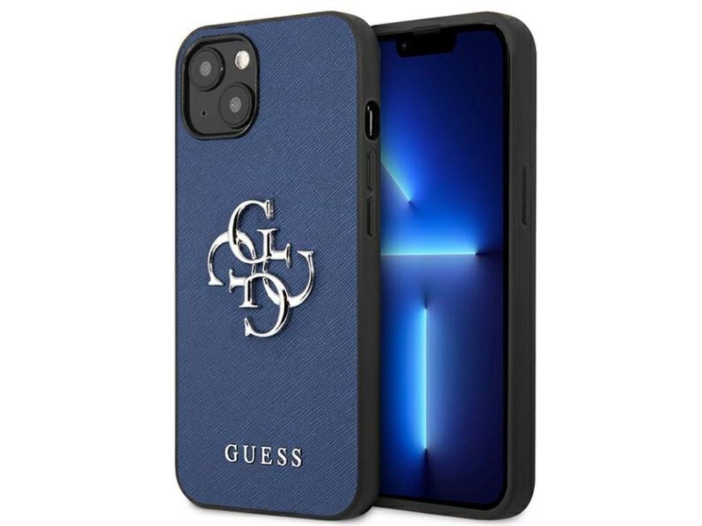Guess Saffiano 4G Big Silver Logo - pouzdro pro iPhone 13 mini (modré)
