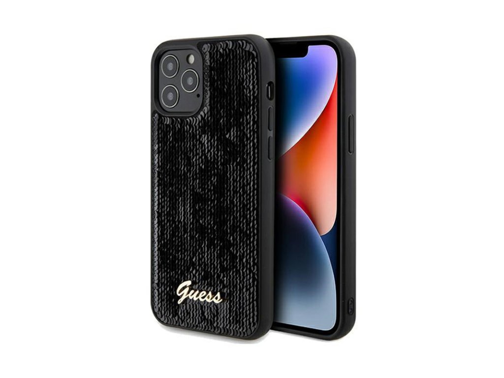 Guess Sequin Script Metal - pouzdro pro iPhone 12 / iPhone 12 Pro (černé)