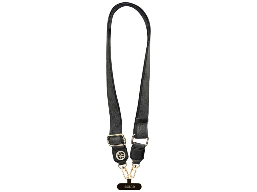 Guess Universal Crossbody Strap 4G Tether Patch Strass Metal Logo - Univerzální popruh / šňůrka na telefon (černý)