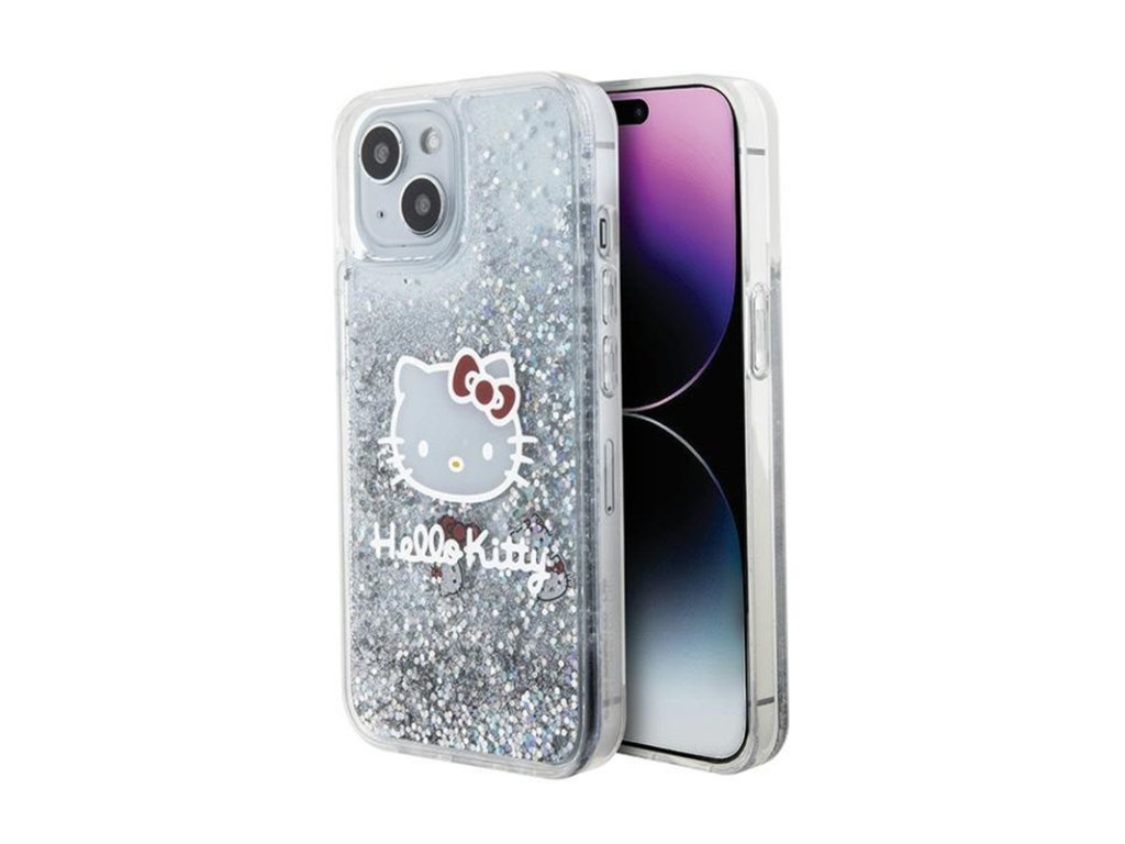 Hello Kitty Liquid Glitter Charms Kitty Head - pouzdro na iPhone 15 (stříbrné)