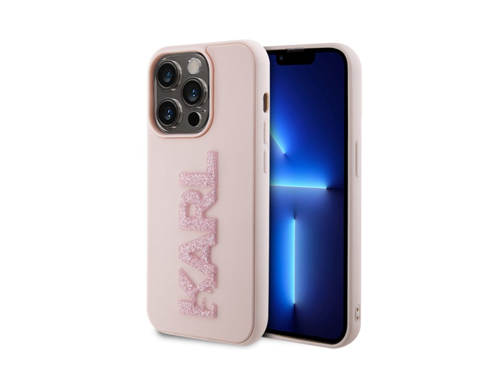 Karl Lagerfeld 3D Rubber Glitter Logo - pouzdro pro iPhone 15 Pro (růžové)