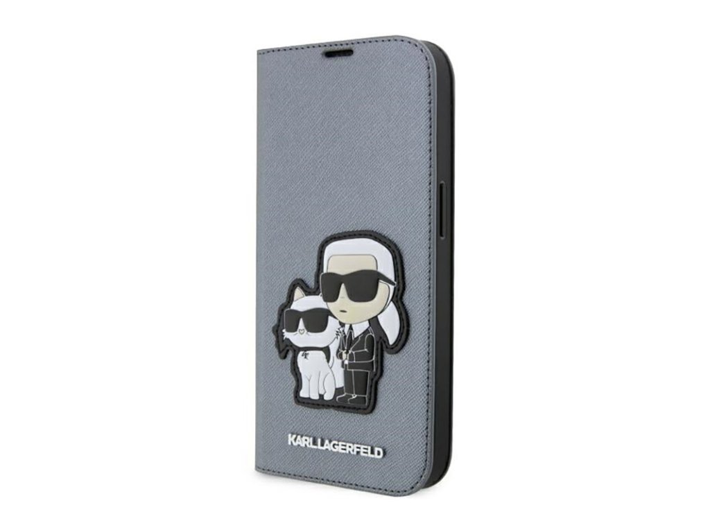 Karl Lagerfeld Booktype NFT Saffiano Karl & Choupette - pouzdro pro iPhone 14 Pro (stříbrné)
