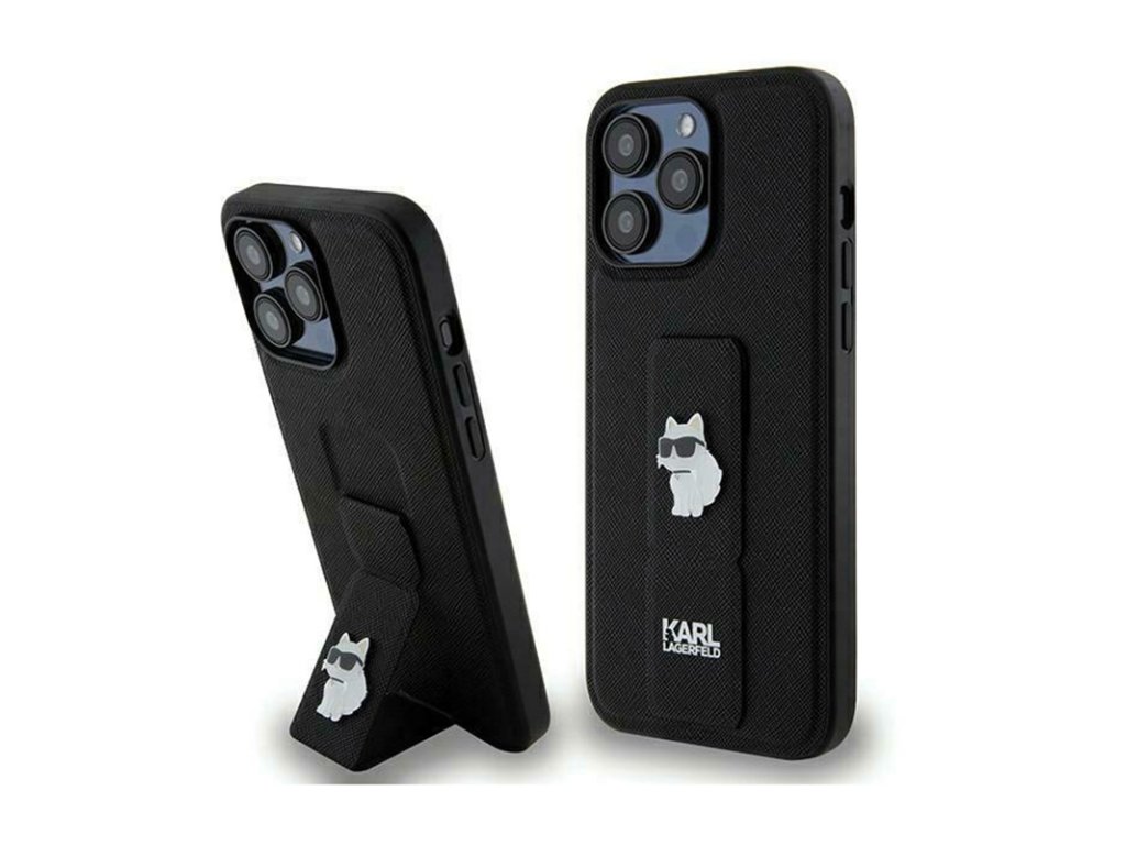 Karl Lagerfeld Gripstand Saffiano Choupette Pins - pouzdro iPhone 13 Pro (černé)