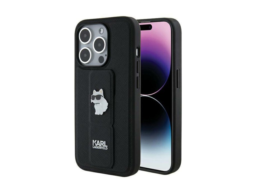 Karl Lagerfeld Gripstand Saffiano Choupette Pins - pouzdro iPhone 14 Pro Max (černé)