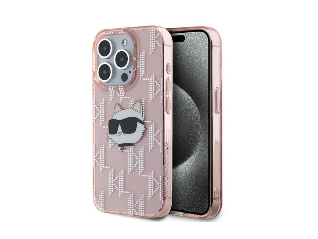 Karl Lagerfeld IML Choupette Head & Monogram - pouzdro pro iPhone 15 Pro Max (růžové)