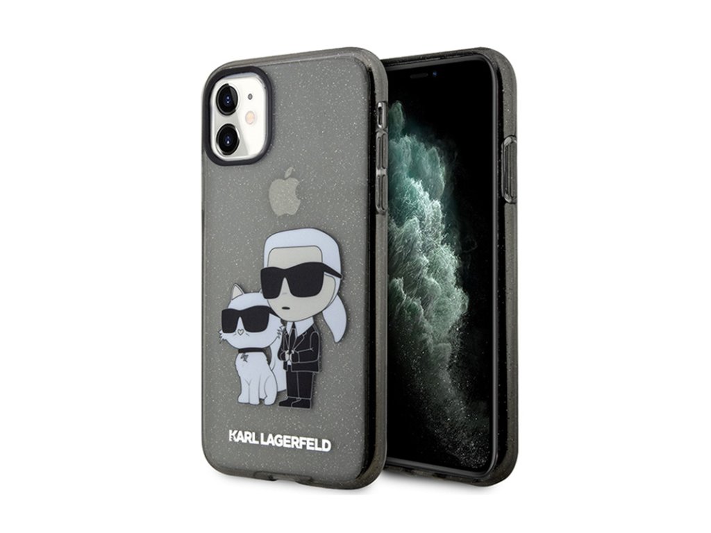 Karl Lagerfeld IML Glitter Karl & Choupette - pouzdro pro iPhone 11 (černé)