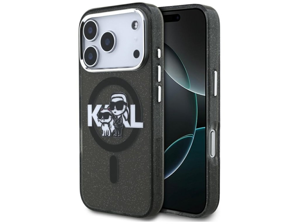 Karl Lagerfeld IML Glitter Karl & Choupette Sketch Logo MagSafe - Pouzdro iPhone 17 Pro (černé)
