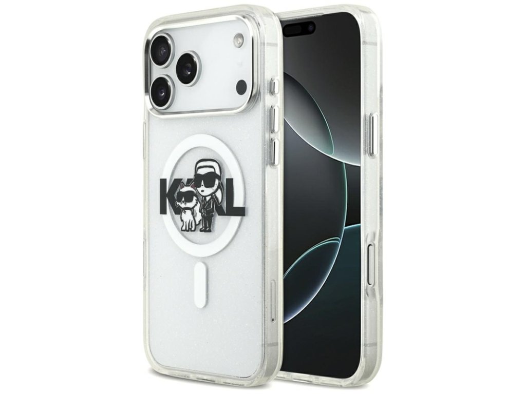Karl Lagerfeld IML Glitter Karl & Choupette Sketch Logo MagSafe - Pouzdro pro iPhone 17 Pro Max (průhledné)