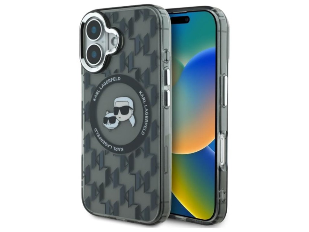 Karl Lagerfeld IML Monogram Karl & Choupette Head MagSafe - Pouzdro pro iPhone 16 (černé)