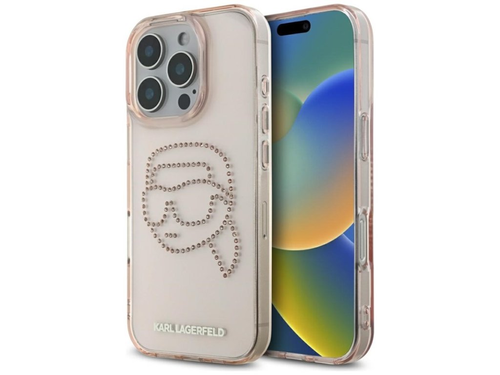 Karl Lagerfeld IML Rhinestones Karl Head - Pouzdro pro iPhone 16 Pro (růžové)