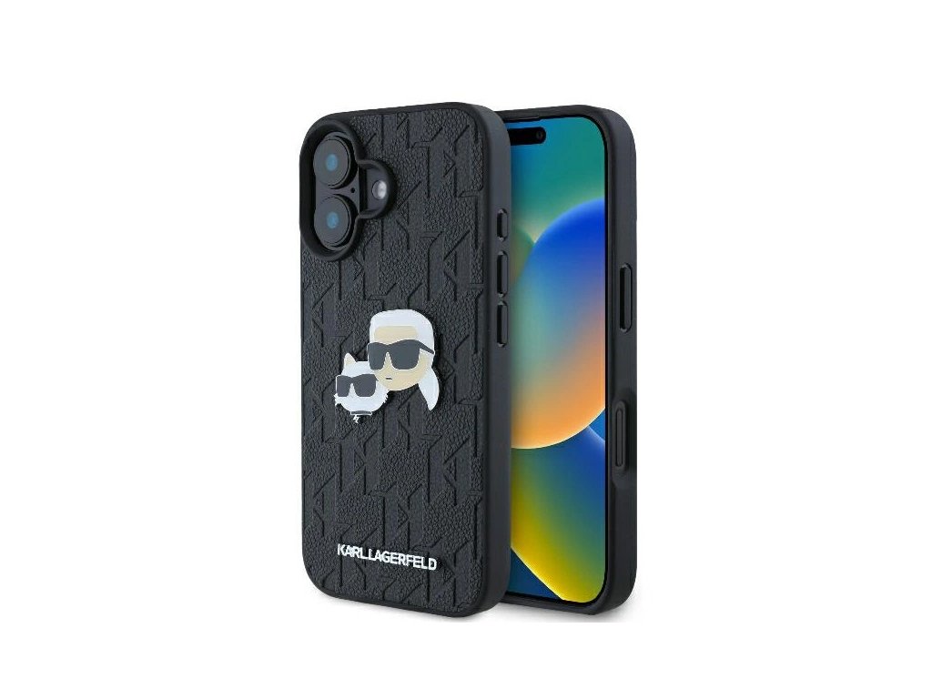 Karl Lagerfeld KLHCP16SPGKLKCPK Apple iPhone 16 hardcase Monogram Karl&Chaoupette Head Pin black